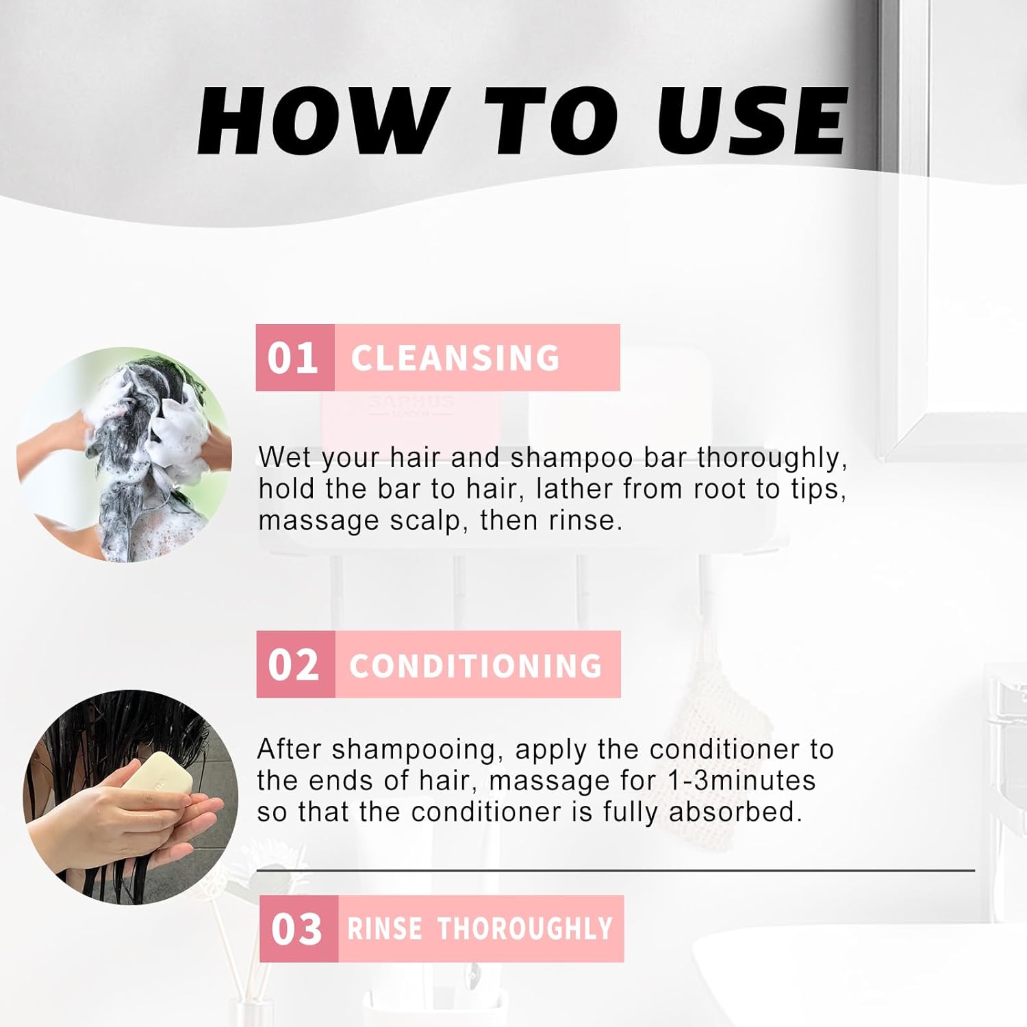 - Healthy Results: This shampoo and conditioner bar does not contain any soap base and is not cold-pressed so that it can keep the proper pH value to balance the oils in scalp, keep your hair more healthier.