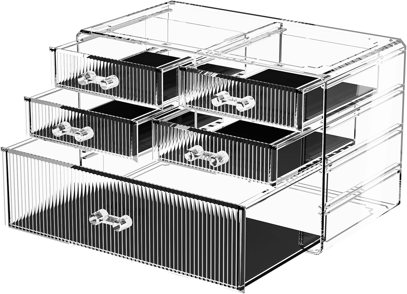 ZHIAI Stackable Storage Drawers, Acrylic Bathroom Counter Organizer Clear Makeup Organizers for Vanity, Kitchen Cabinets, Bathroom, Undersink, Home Organization and Storage (5 Drawers, Pattern C)