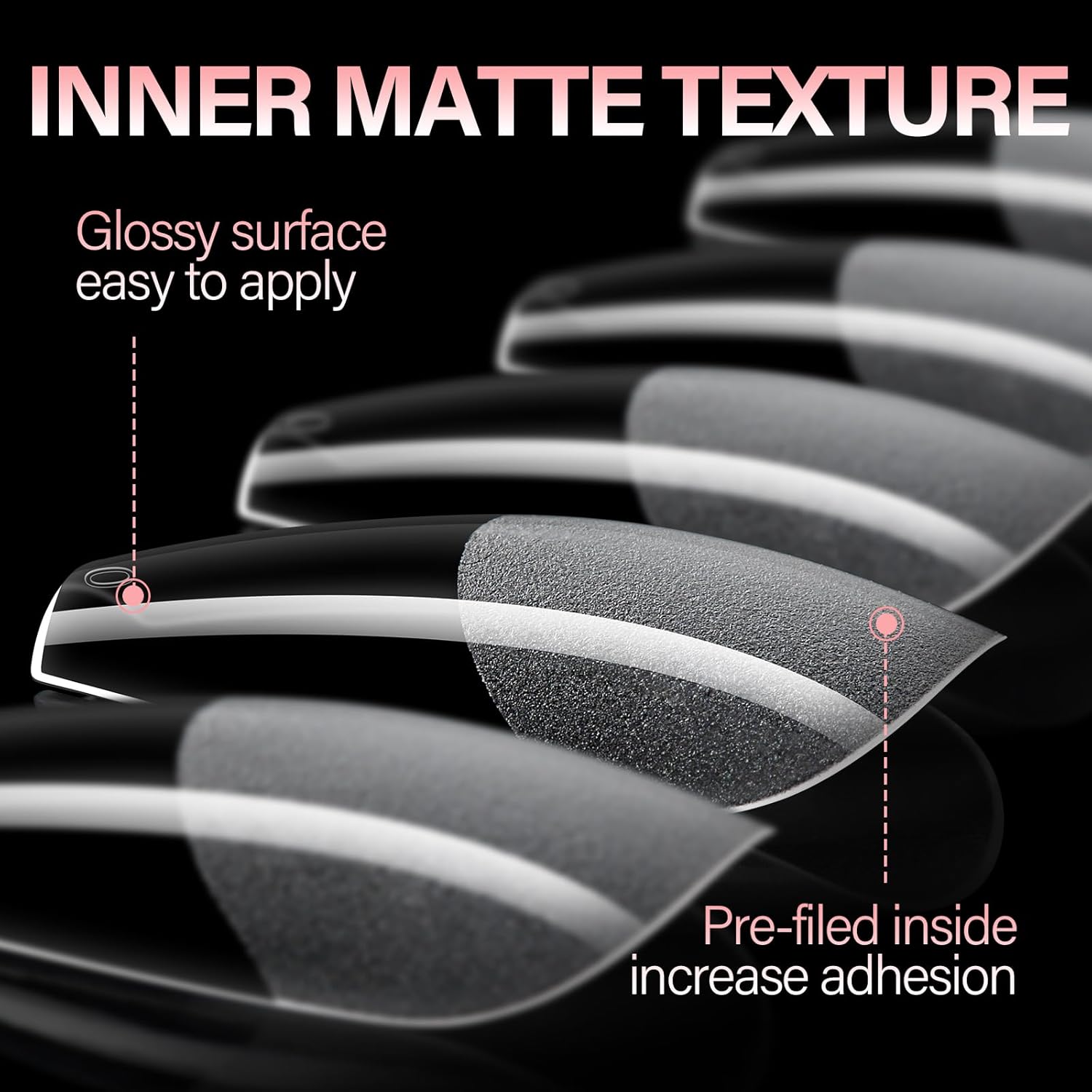 • Easy to Use: AILLSA's press on nails feature an inner matte texture and a thicker front edge and thinner back edge. This makes AILLSA nail tips more breathable, flattering, and reliable and eliminates the need to polish the surface and shape.