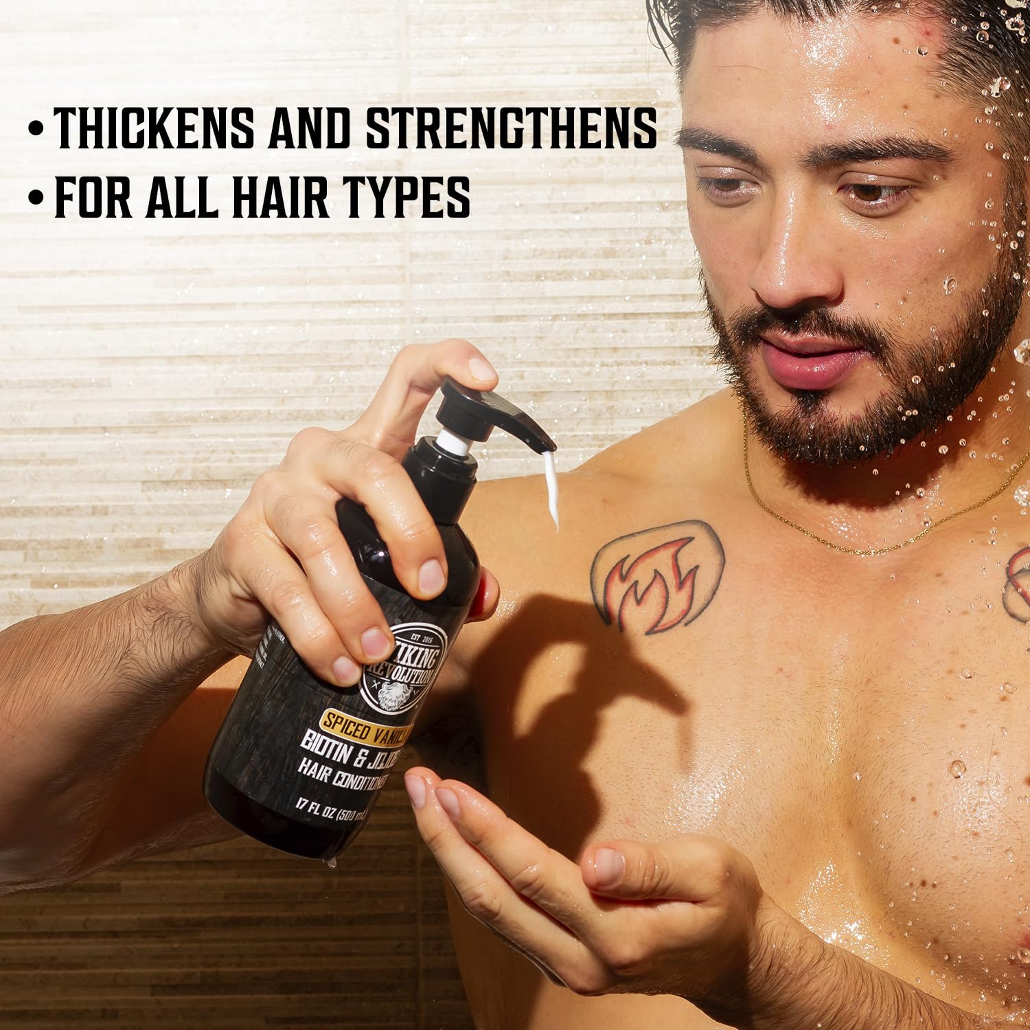 Viking Revolution Sweet Tobacco Mens Shampoo and Conditioner Set with Biotin and Jojoba Oil - Natural Hair Shampoo and Hair Conditioner for Men with Vitamin B5 - Mens Shampoo for Thinning Hair (17Oz)