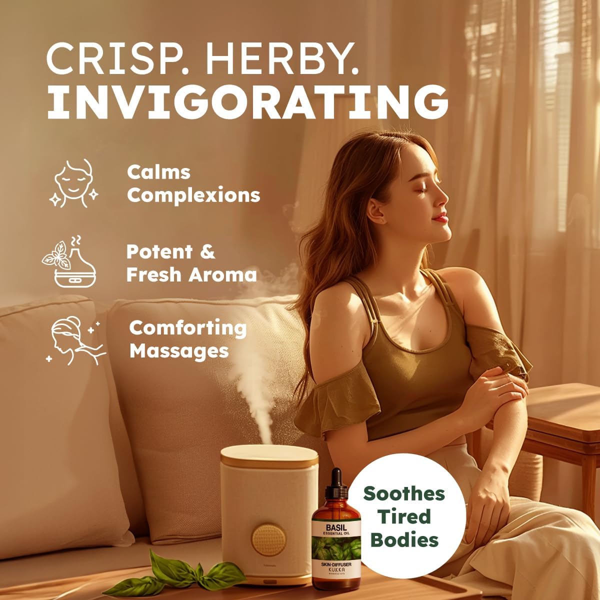 Kukka Basil Essential Oil for Diffusers - 4 Fl Oz - Basil Oil for Skin & Aromatherapy Scent Massage Candles, DIY Soap Making Scents