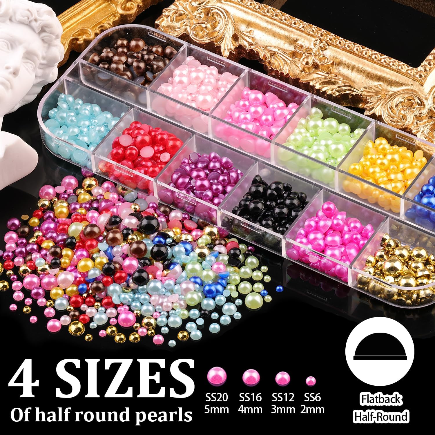 • 💎SUPERIOR MATERIALS & CHARMING COLORS -- The nail gems are made of durable, high-quality glass(clear diamonds are luxurious and versatile that is applicable to multiple scenes, and AB color nail jewels can reflect iridescent glamour). Our half-round flatback pearls in mixed colors that adopt light ABS resin as material are smooth and glossy. We suggest applying a top coat over the pearls after your nail art to better maintain the pearls' luster and color.