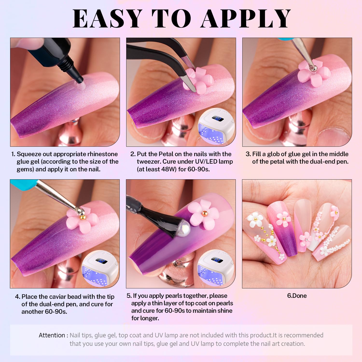 • 💎RHINESTONE DOTTING PICKER TOOLS -- The wide-head brush end of the dual-end dotting tool makes it easy to apply a large amount of glue to the nail surface at once, while the other mini dotting end is great for detailed drawing. Picker pen can help you handily pick up small flowers and metal beads, while tweezer is a better choice for big flowers and charms. The craftbeads are not self-adhesive and glue-needed. (Glue is not included.)