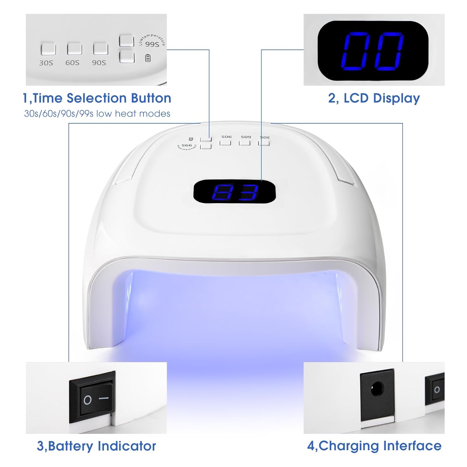 Professional Rechargeable UV LED Nail Lamp 60W UV Led Portable Cordless Nail Light for Nail Lamp Machine, 4 Timer Setting and Smart Sensor Nail Dryer, LCD Display