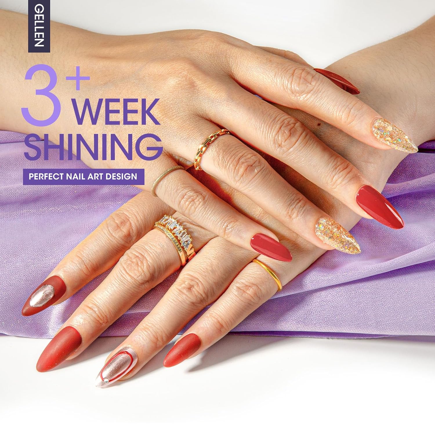 - 18 ml Large Capacity: Gellen gel top coat set contains 1*18 ml base coat, 1*18 ml glossy top coat, 1*18 ml nail strengthener gel. This set can harden your weak thin nails, adding extra thickness and strength to your gel manicure