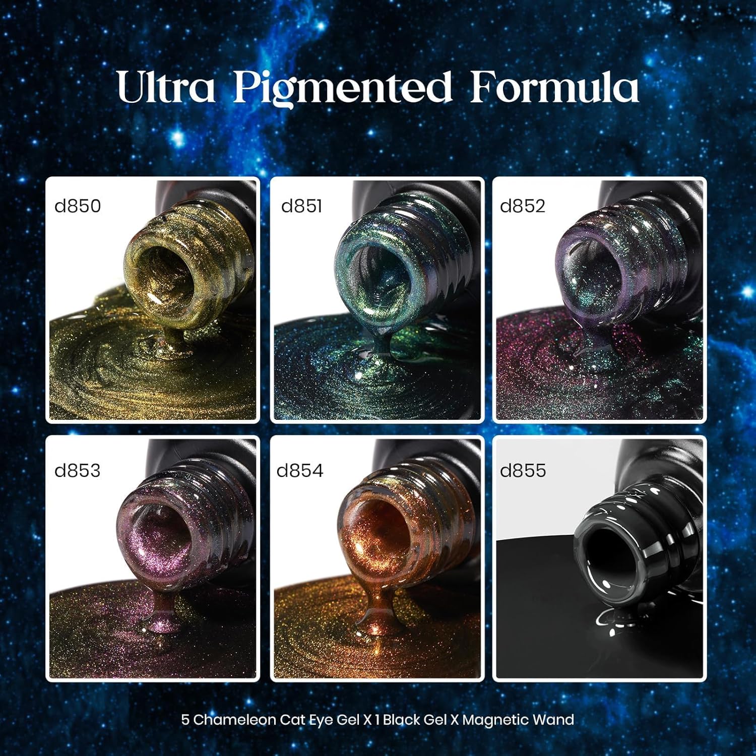 • 【Layer for Stunning Effects】Get deeper, more intense cat eye looks by layering over the included black gel polish. The colors are so rich that they seem to overflow from the fingertips. You can customize according to your mood and style(Apply base coat,curing 30-60s; then apply black gel, curing 30-60s; then apply cat eye gel and use the equipped magnet to create the cat eye you want, curing 30-60s; finally apply top coat, curing 60-120s,it's done!)