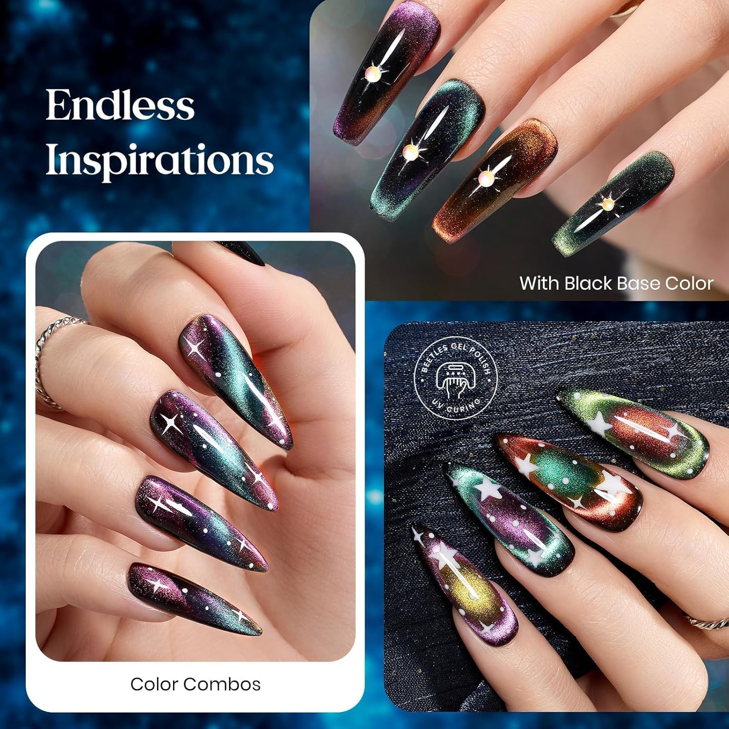 • 【Magic Color-Shifting Effect】Experience beetles chameleon cat eye nails that shift colors under different lighting! From soft sheer color to dazzling galaxy glitter effect, your nails will captivate every glance with dynamic, light Catching sparkle and sleek lines. Fashionable and eye Catching, highlighting your personality!