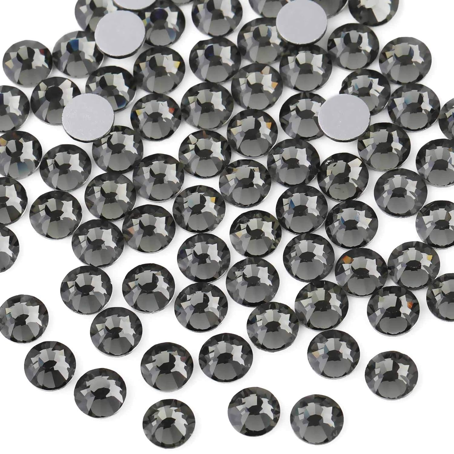 Beadsland 288pcs Flat Back Crystal Rhinestones Round Gems for Nail Art and Craft Glue Fix,Black Diamond,SS34,7.1-7.3mm