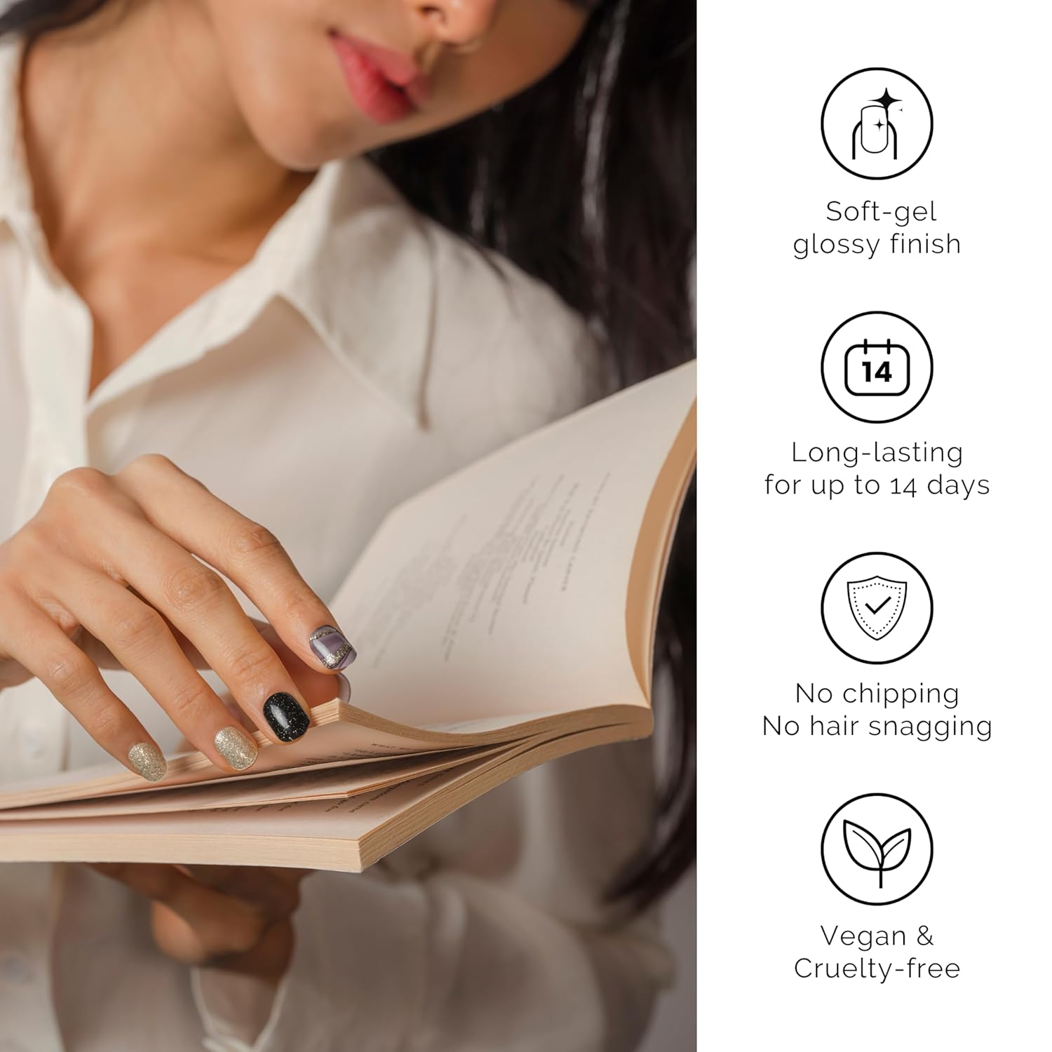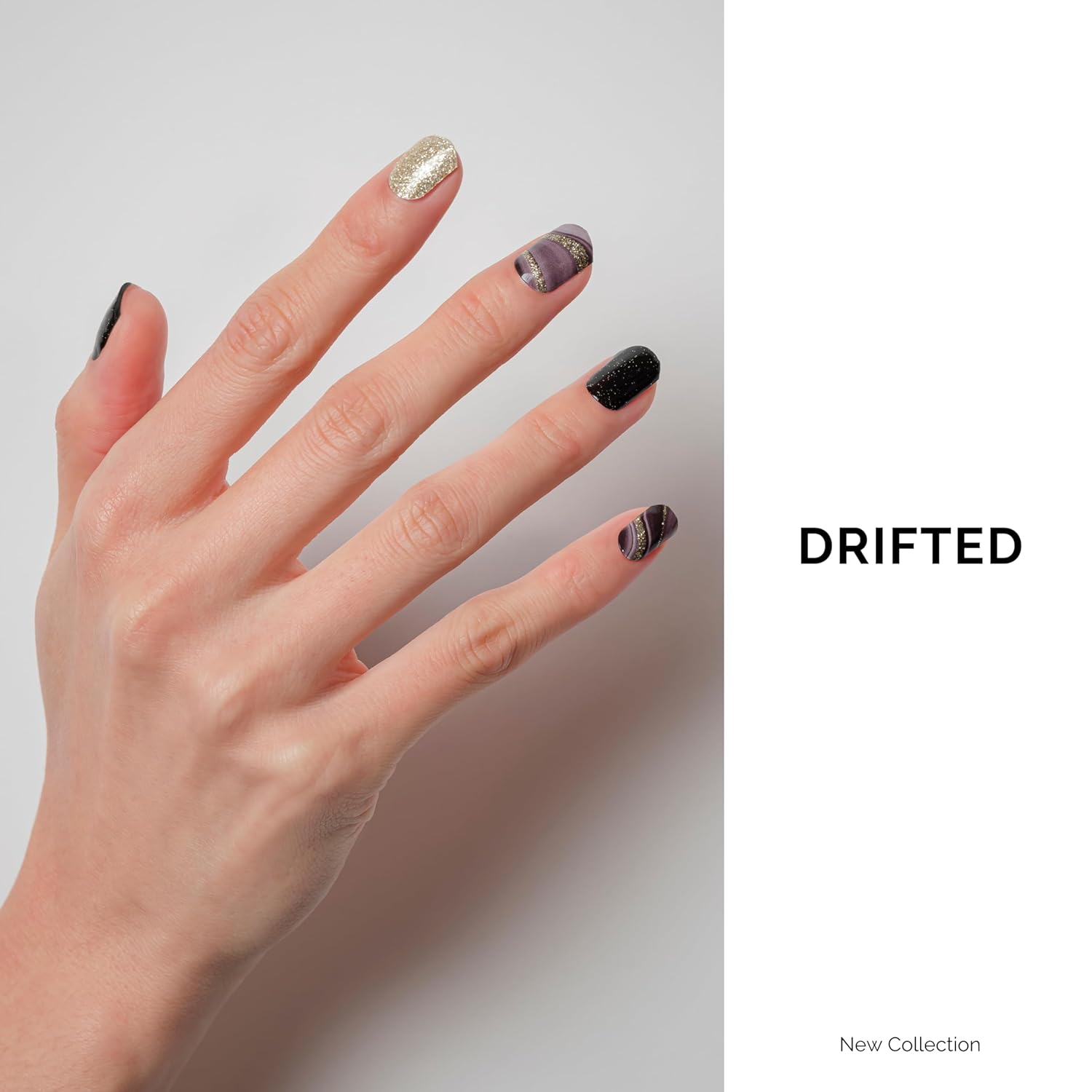 Nailog Semi Cured Gel Nail Strips 34 pcs | Buy 2 Get 1 UV Lamp | Long Lasting Nail Polish Sticker Wraps with Glossy Gel Finish (Drifted)
