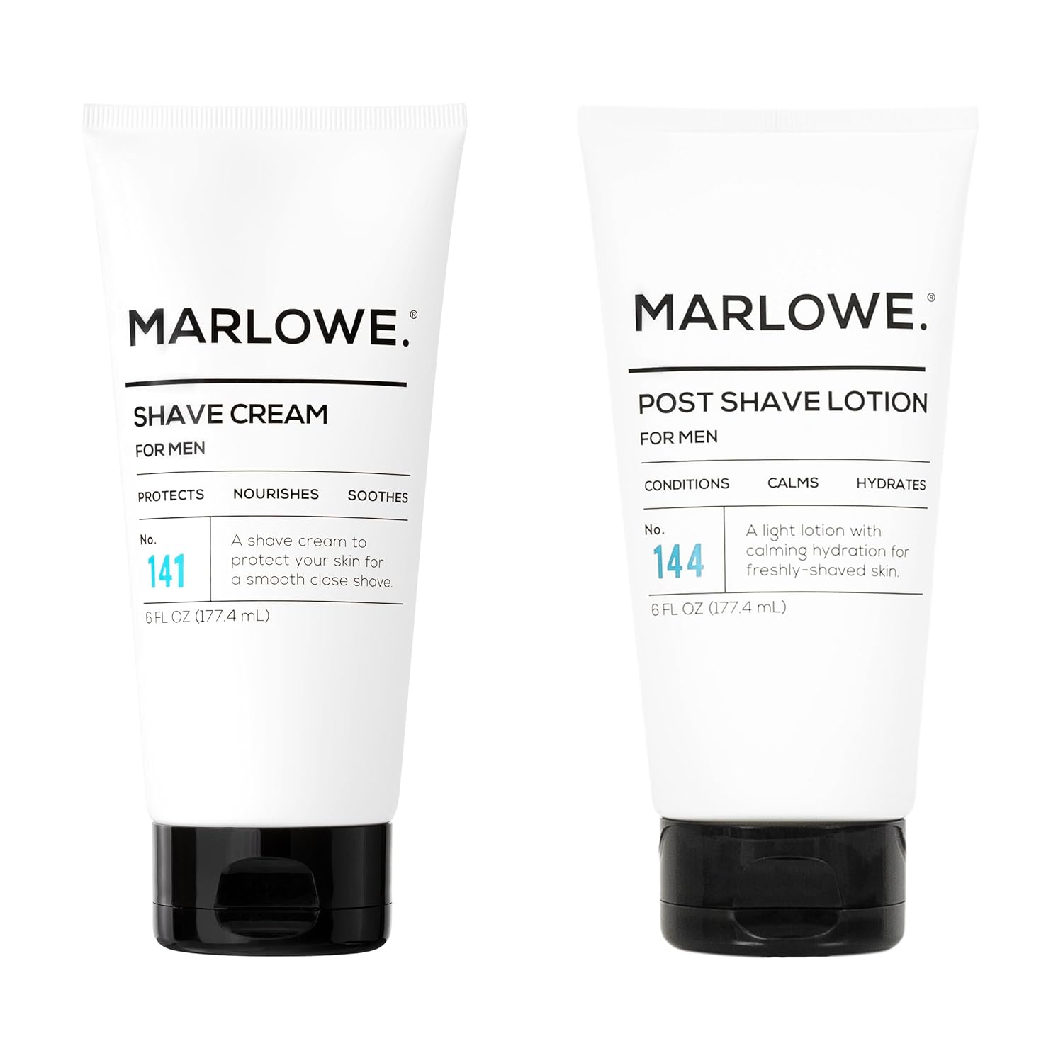 MARLOWE. Shave Cream No. 141 & Post Shave Lotion No. 144 – 6oz Each – Conditioning Shave Cream & Aftershave Lotion for Smooth, Soothing, Close Shave – Men's Shaving Kit Essentials, 2-Pack