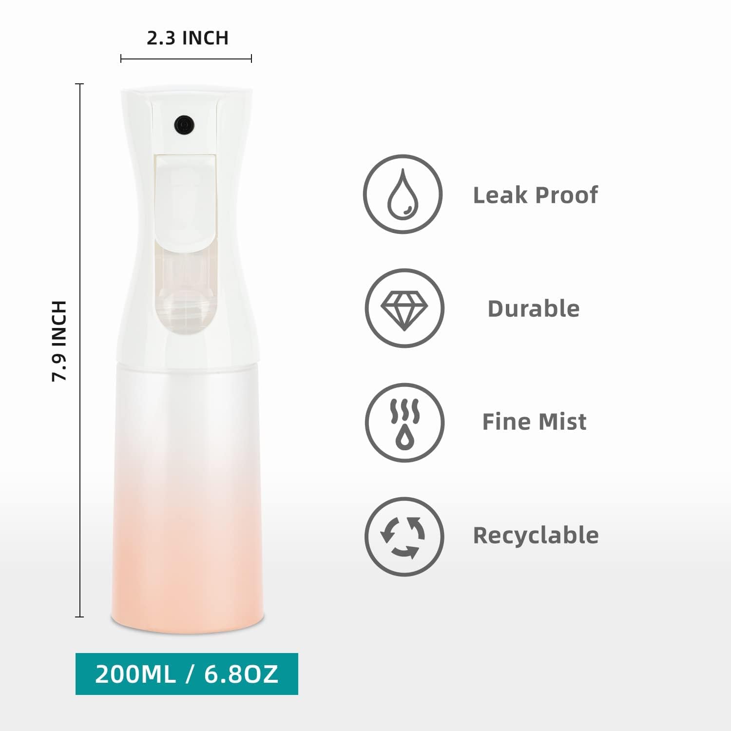 - 【Warm Tips】Please do not fill thick liquids and oily liquids inside, otherwise, the nozzle may become clogged over time. Do not aim the nozzle at your eyes. Capacity: 200ml/6.8oz, Height: 20cm/7.87inch; Diameter: 5.3cm/2.28inch.