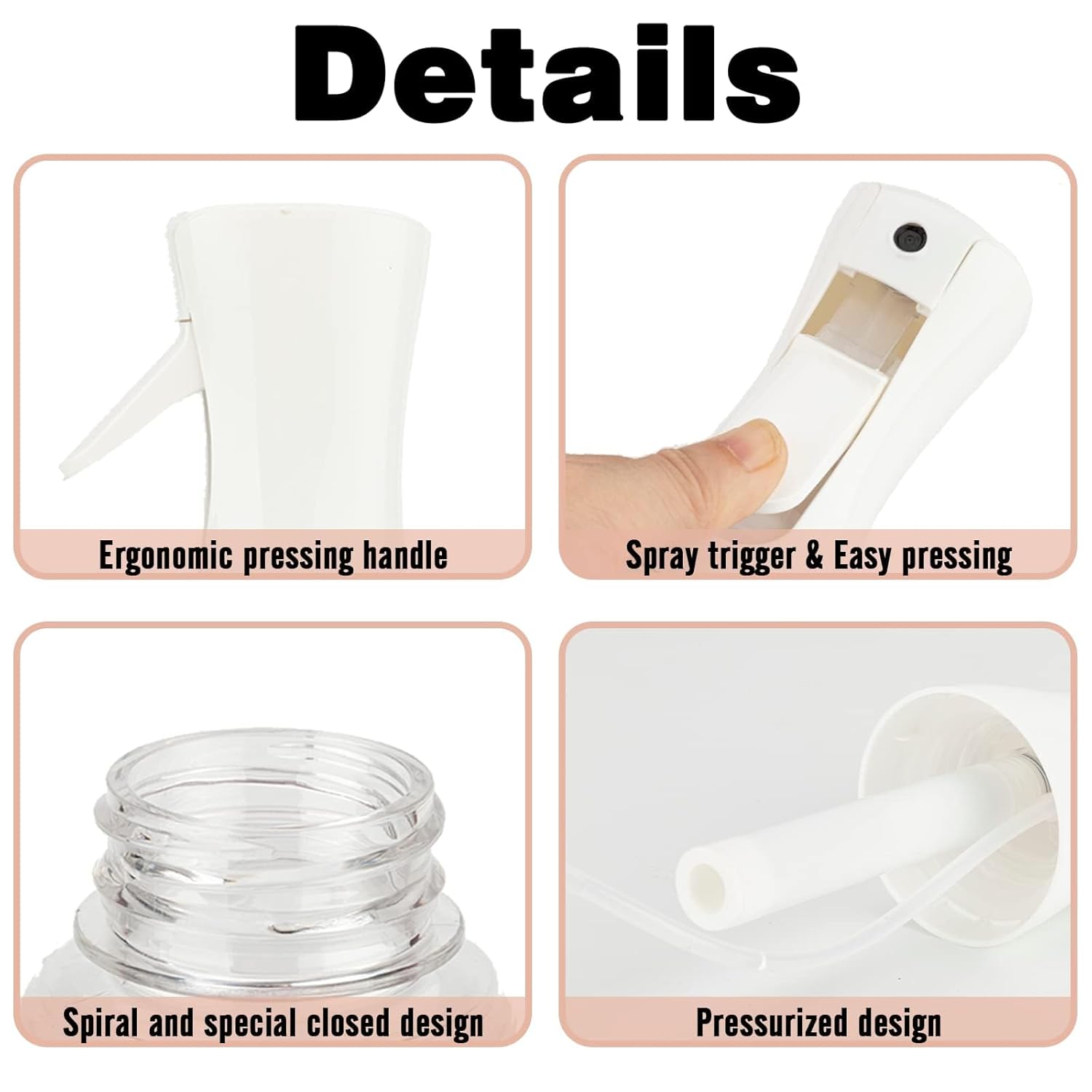 - 【Continuous Spray】The continuous spray bottle is engineered with robust pre-compression technology, which produces a mist stream that lasts for several seconds with just a few gentle presses.
