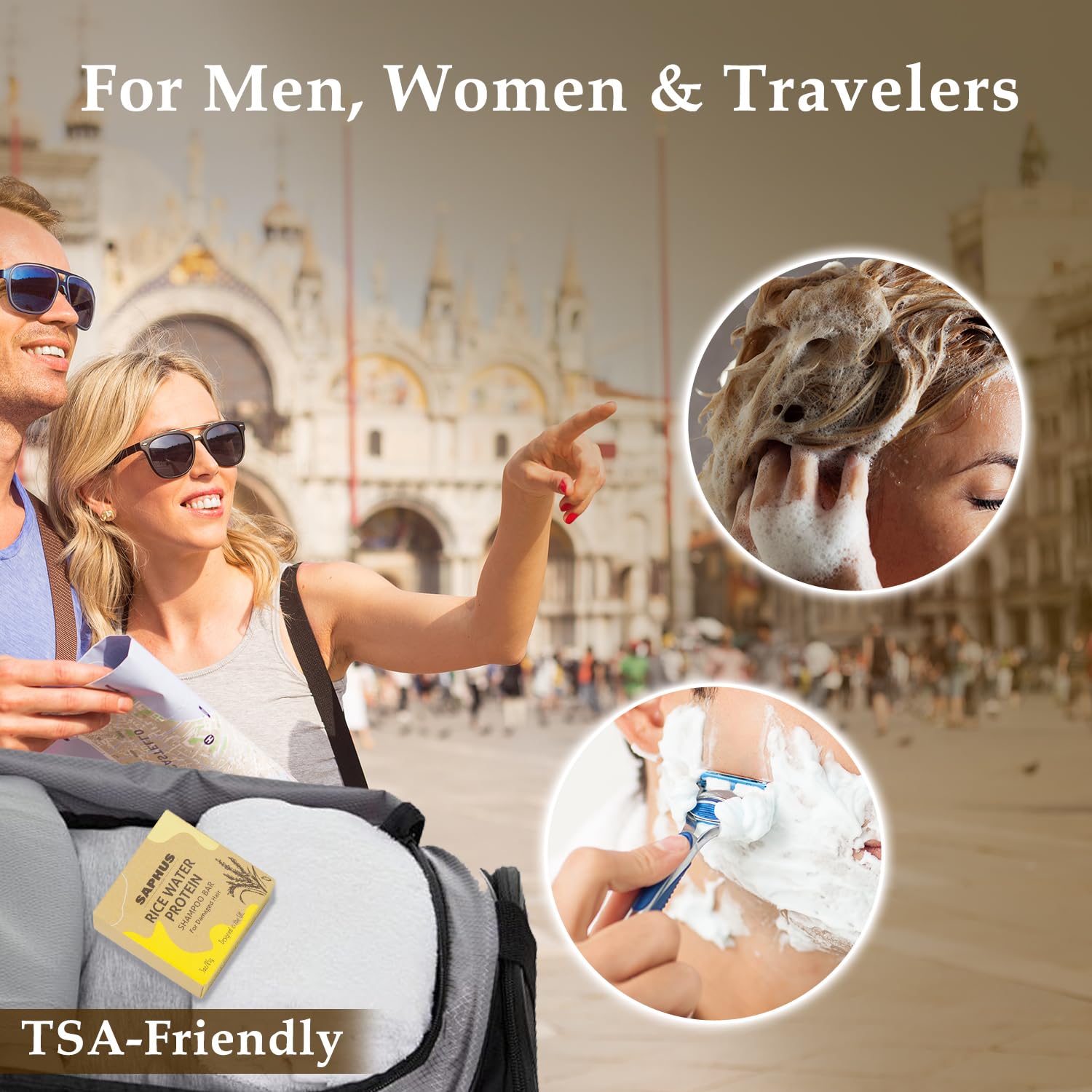 - Powered by Fermented Rice Water – SAPHUS Rice Water Shampoo and Conditioner Bar rich in amino acids and vitamins that help strengthen hair roots and promote healthier, thicker-looking strands