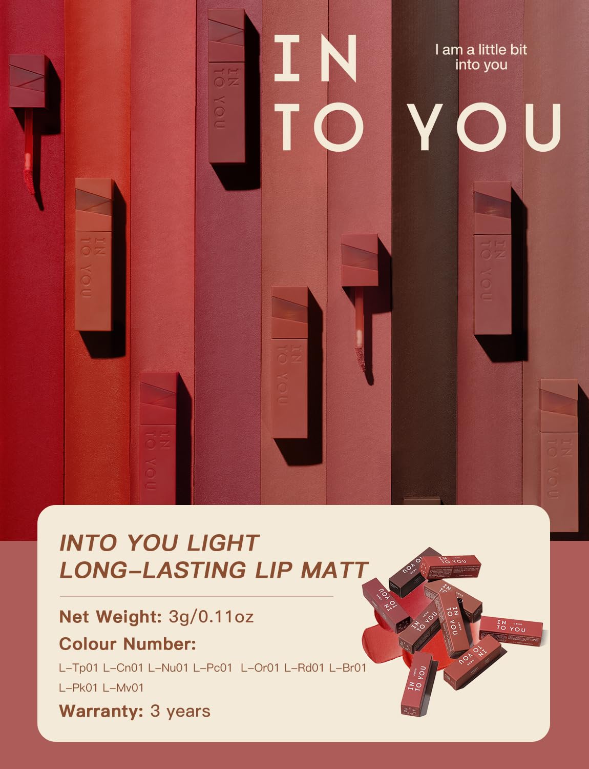 INTO YOU Matte Velvet Lip Stain Long Lasting Waterproof Lip Gloss Makeup Moisturizing Lipstick for Women (L-Cn01)