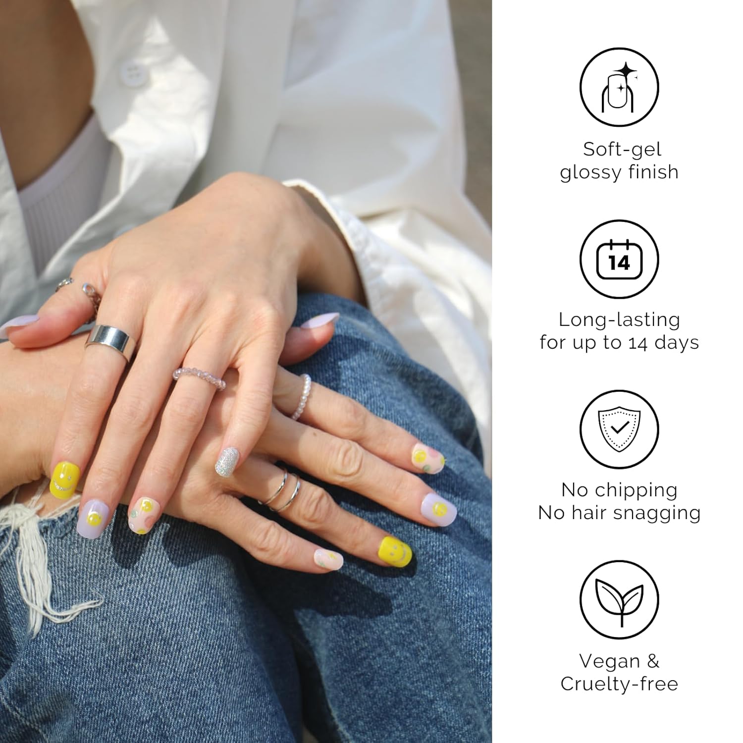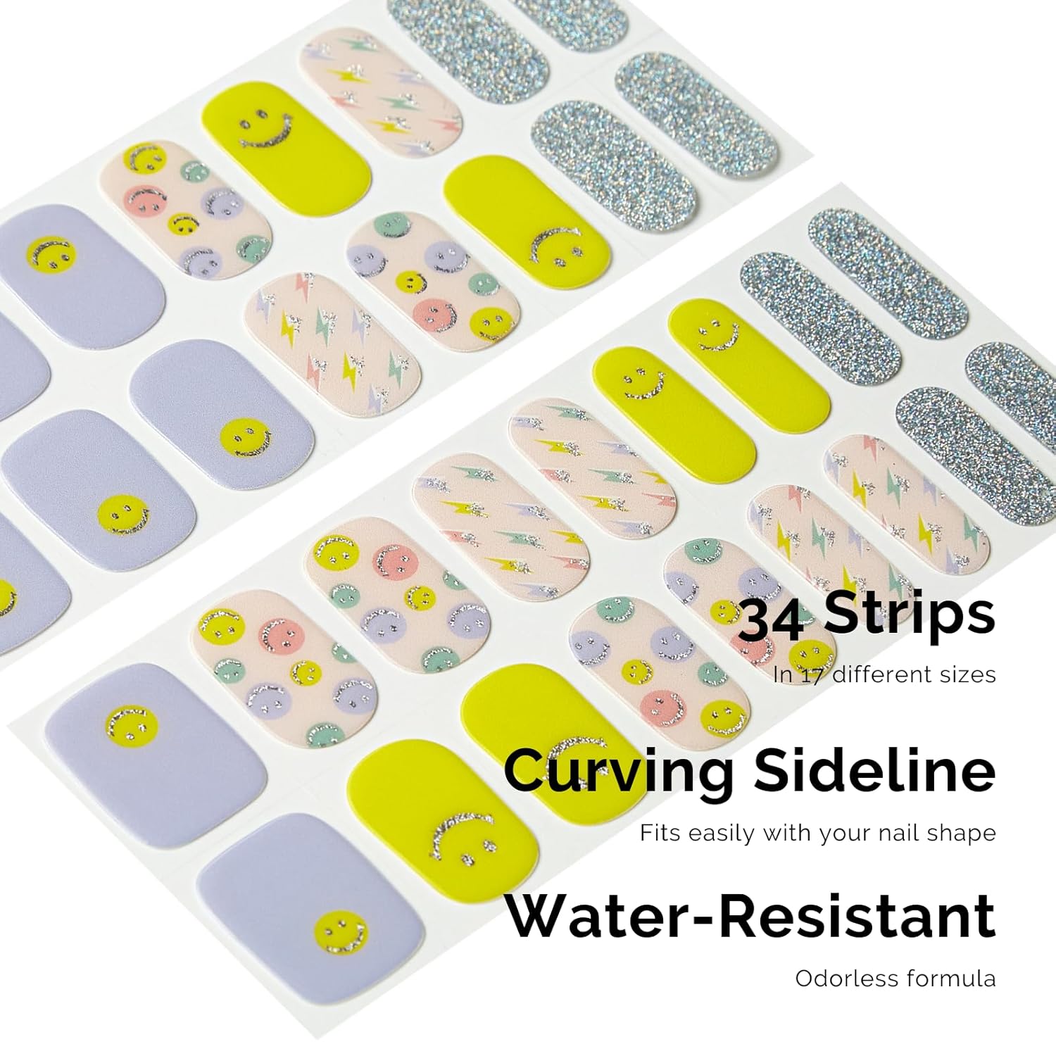 NAILOG Semi Cured Gel Nail Strips 34 pcs| Buy 2 Get 1 UV Lamp | Long Lasting Nail Polish Sticker Wraps with Glossy Gel Finish, Feeling Good