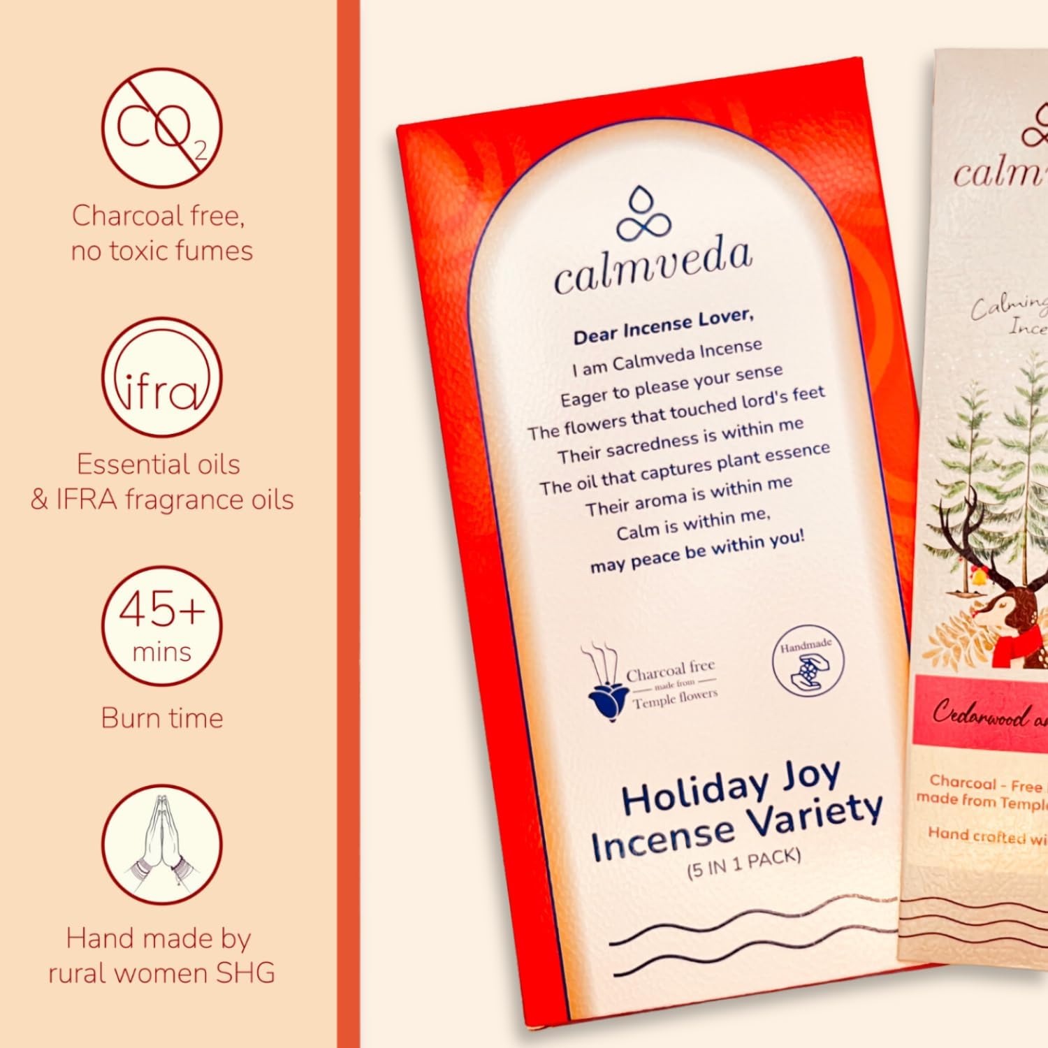 - BURN CLEAN CHARCOAL-FREE INCENSE : HOLIDAY FALL incense variety pack are made using flower powder in place of charcoal, hence a clean home fragrance solution.