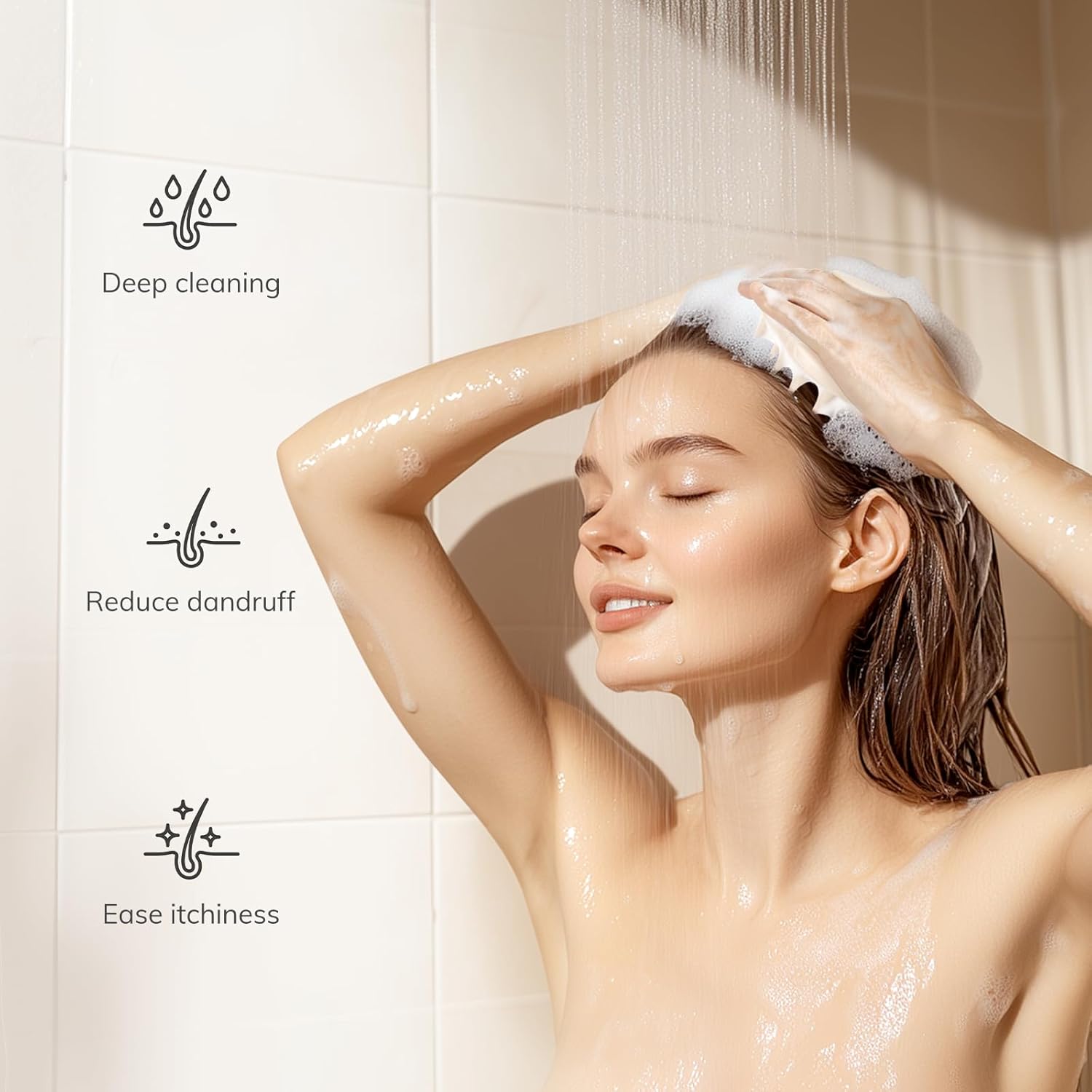 • Long Bristles for Deep Cleaning: The scalp scrubber has one-inch long silicone bristles that easily penetrate thick hair and distribute shampoo evenly. It is easier to create a rich lather than using your hands, and can help you gently remove dandruff and buildup from your scalp