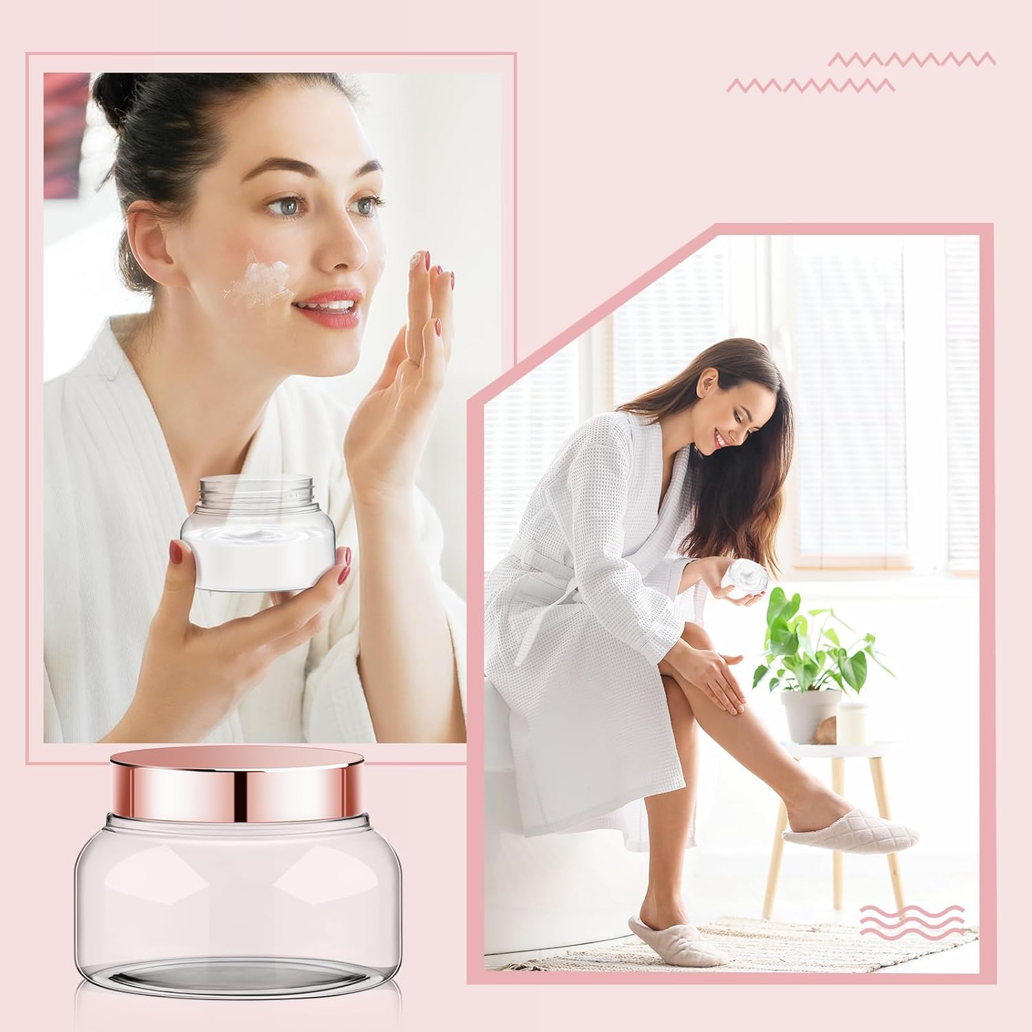 Tessco 24 Pack Plastic Jars with Lids Labels Empty Clear Plastic Jars Round Refillable Cosmetic Containers Body Butter Containers Bulk Sugar Scrub Bottle for Make Up(8 oz,Rose Gold)