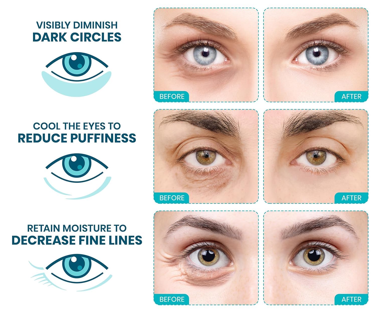 - SAY GOODBYE TO DARK CIRCLES & PUFFINESS - Tired of looking exhausted? Our eye patches for puffy eyes and dark circles are designed to refresh, hydrate, and improve the appearance of under-eye bags and puffiness. These collagen eye patches for women help promote a brighter, well-rested look.
