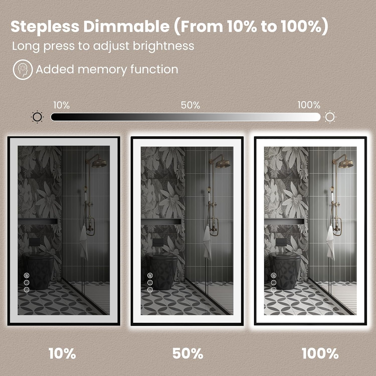 Amorho 48" X36" LED Bathroom Mirror with Black Frame, Front Light and Backlit(Controlled Separately), Stepless Dimmable, Anti-Fog, Shatter-Proof, 3 Colors, Memory