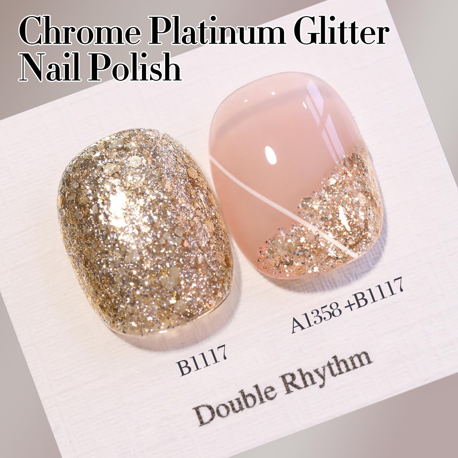 Double Rhythm 15ML Glitter Gel Polish Shimmer Reflective Holographic Color Magnetic for Nail Art Salon DIY at Home (B1117)