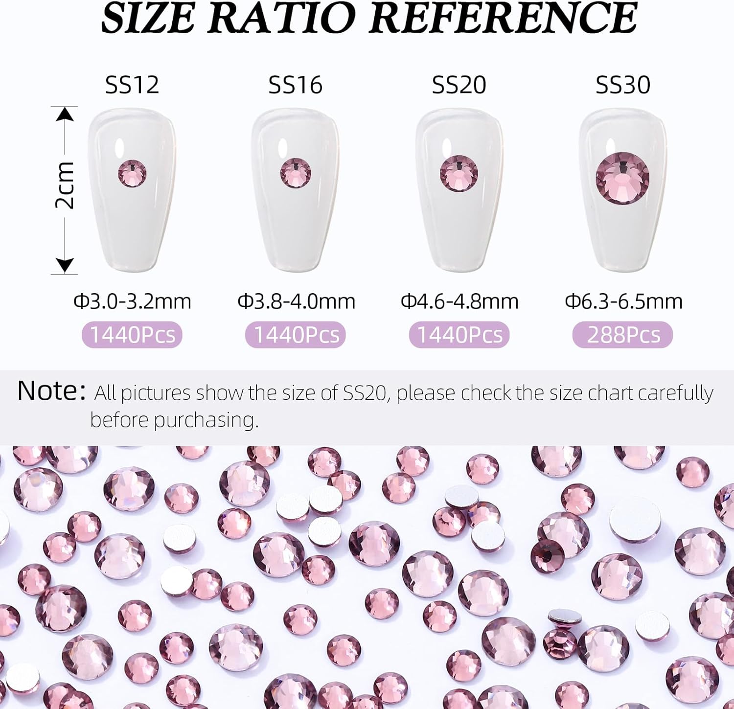 Light Amethyst Flatback Rhinestones, Glass Rhinestones for Nail Art and Craft, Glue Fix, Loose Crystal Gemstones(Lt.Amethyst, SS20, 1440pcs, 4.6-4.8mm)