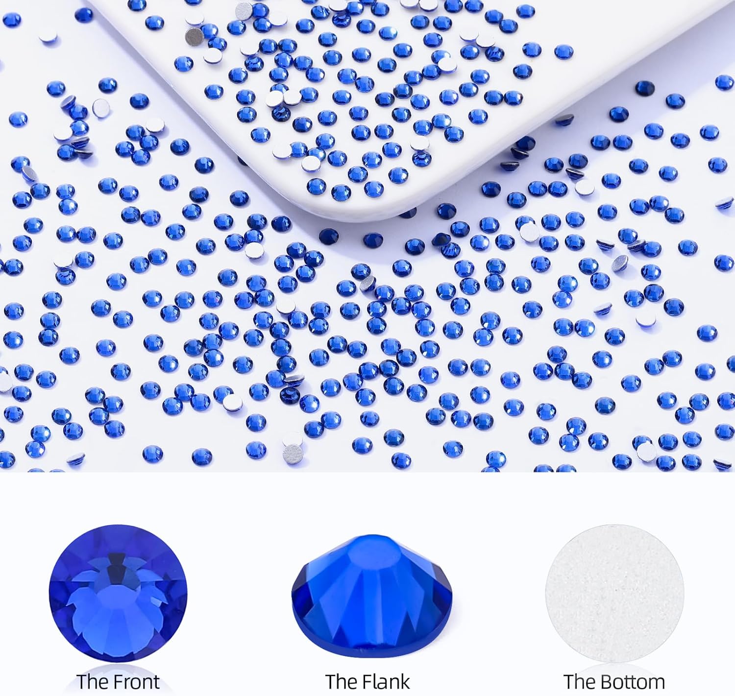 Sapphire Flatback Rhinestones, Glass Rhinestones for Nail Art and Craft, Glue Fix, Loose Crystal Gemstones(Blue, SS6, 1440pcs, 1.9-2.0mm)