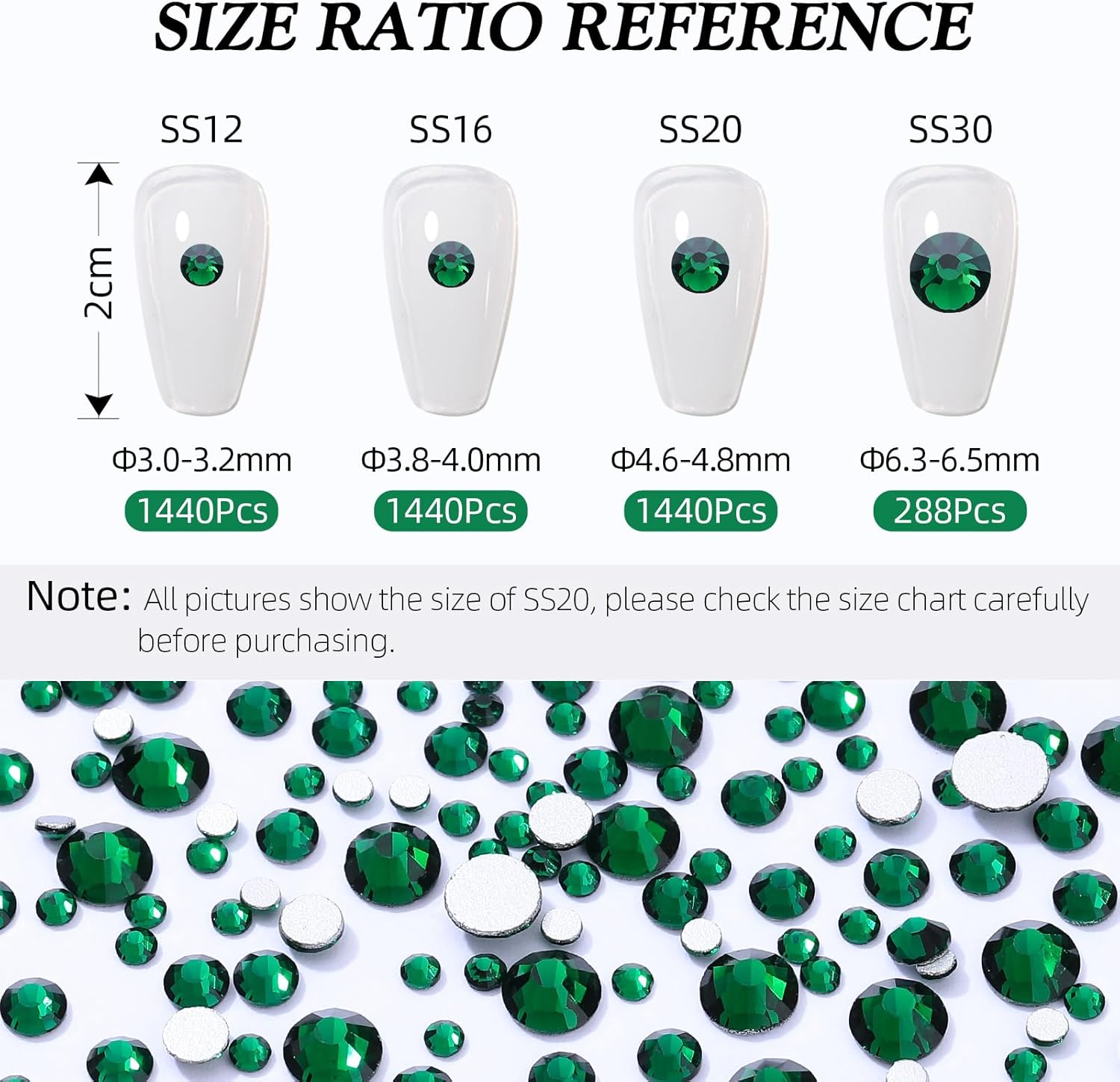 Malachite Green Flatback Rhinestones, Glass Rhinestones for Nail Art and Craft, Glue Fix, Loose Crystal Gemstones(Green, SS30, 288pcs, 6.4-6.6mm)