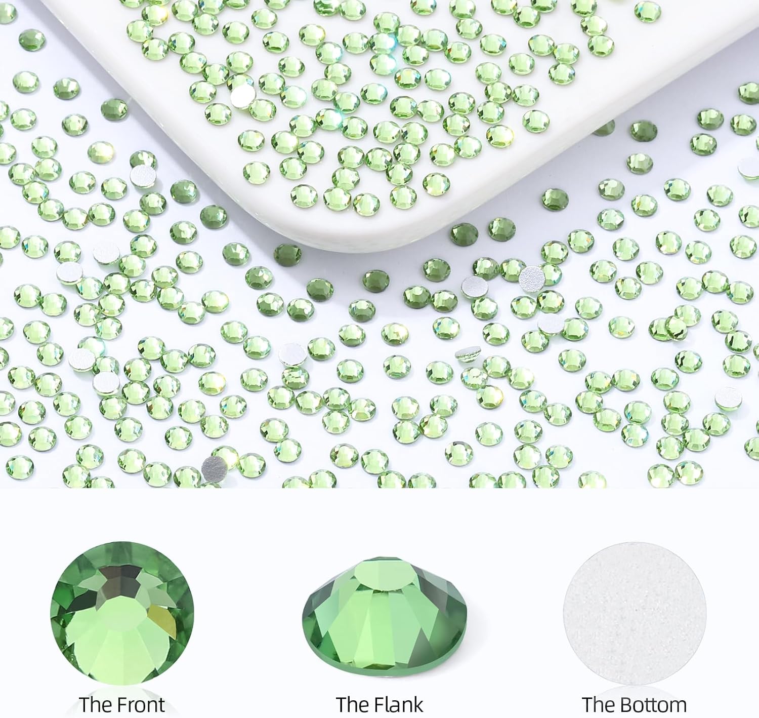 - Product Packaging: Bags packaging SS6 1.9~2.0 MM - 1440 Pcs light green flatback rhinestones
