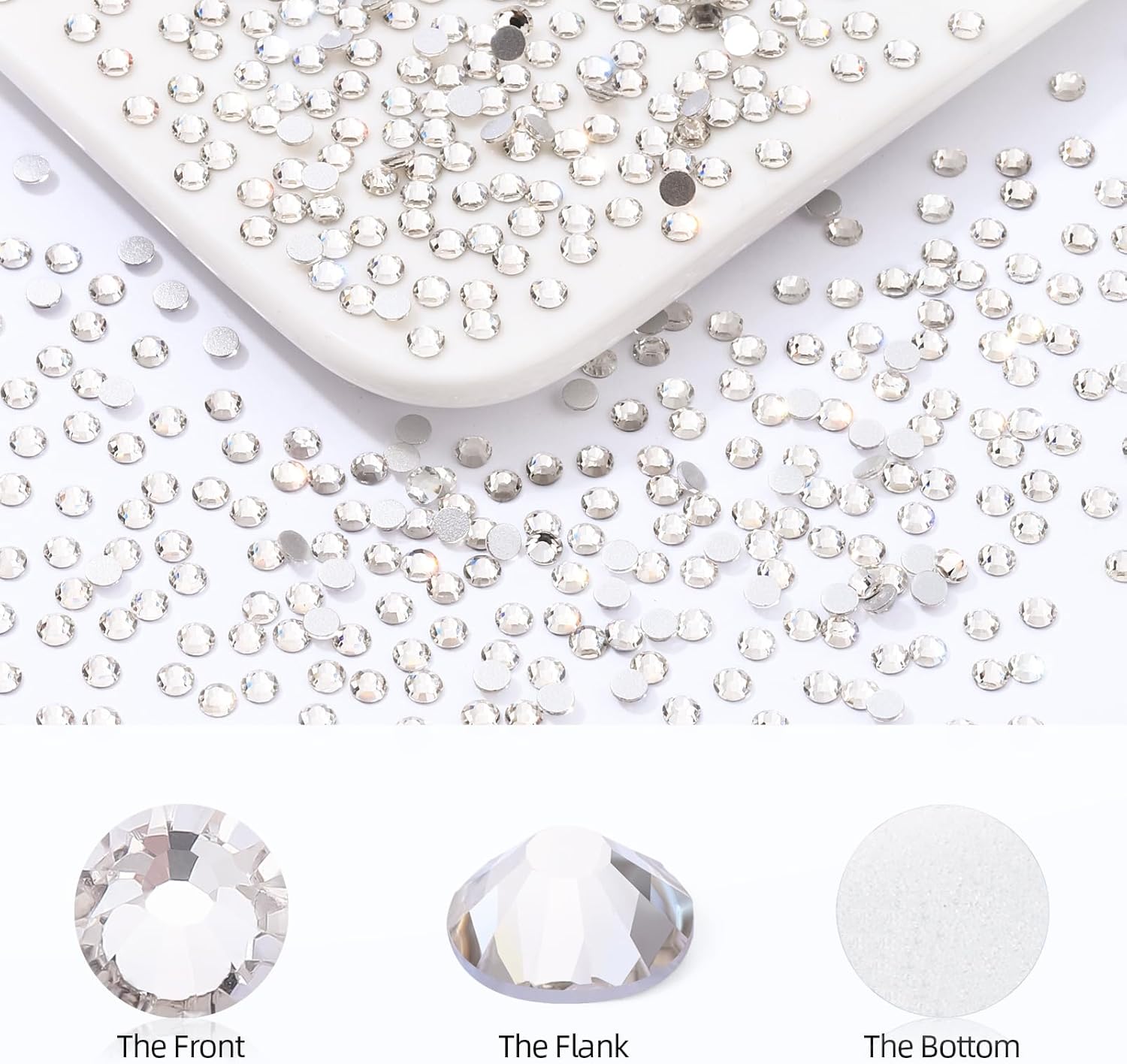 Crystal Clear Flatback Rhinestones, Glass Rhinestones for Nail Art and Craft, Glue Fix, Loose Crystal Gemstones(Crystal, SS3, 1440pcs, 1.3-1.4mm)