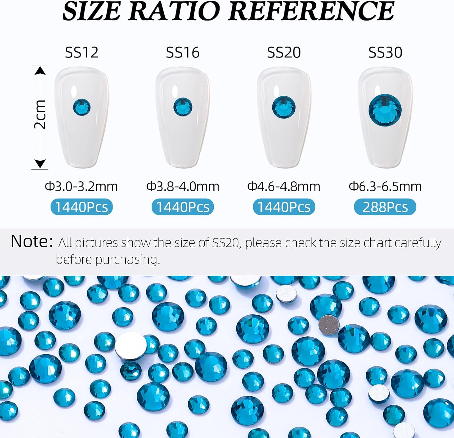 Malachite Blue Flatback Rhinestones, Glass Rhinestones for Nail Art and Craft, Glue Fix, Loose Crystal Gemstones(Malachite Blue, SS12, 1440pcs, 2.9-3.0mm)