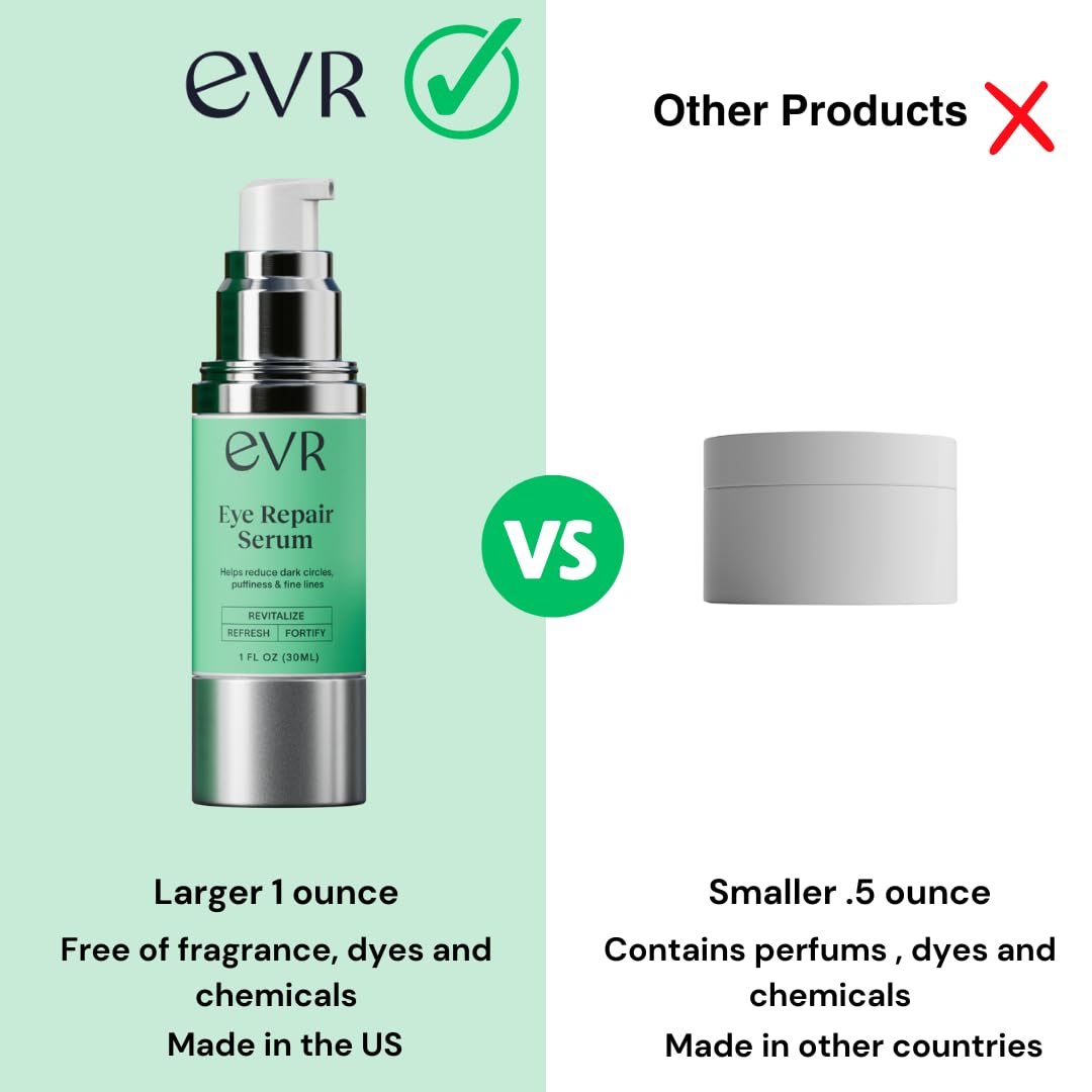 - INTENSE HYDRATION: EVR Beauty's anti-aging eye cream provides intense hydration and moisture, diminishing puffiness and under-eye bags while aiding in reducing the visibility of wrinkles. This fast-absorbing under eye brightener promotes skin lifting, hydration, and firmness for a rejuvenated appearance.