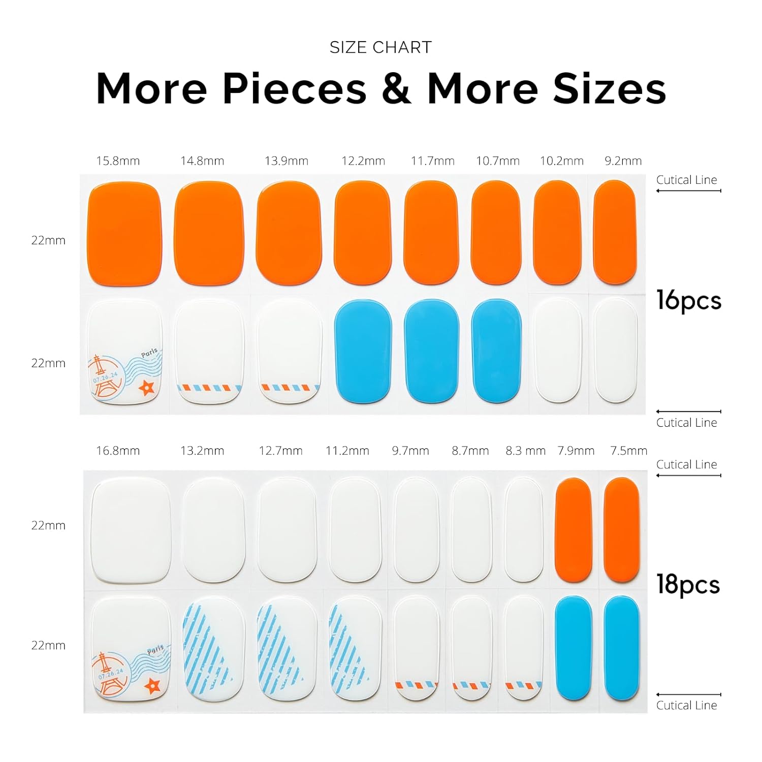 - ă34 PCS NAIL STRIPSăMore Quantity & Sizes than Ever! - With 17 different sizes of our nail art stickers, you can easily find the right size to match your nails. - New curved side line fits even better with your nail shape for seamless adhesion.
