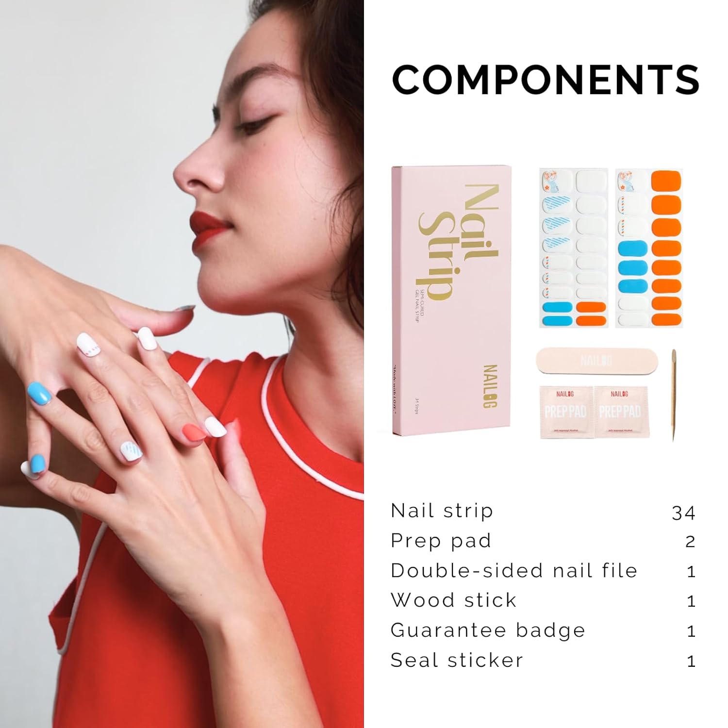 - ăEASY TO APPLYăWith an easy & fast application method, you can get a perfect nail look in minutes! - Nailog semi cured nail stickers are suitable for both manicurists and beginners, so you need not hesitate, even if you have never had a manicure.
