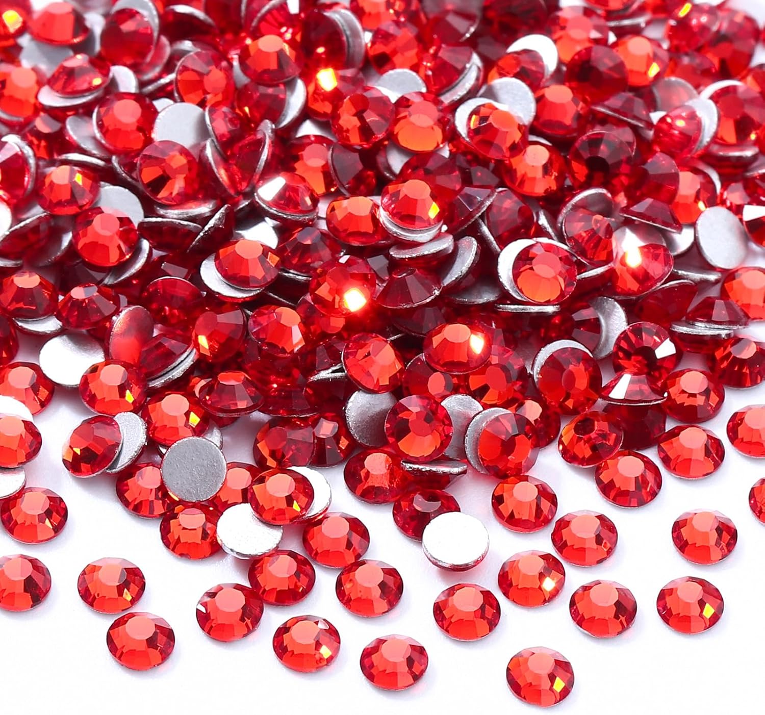 Red Flatback Rhinestones, Glass Rhinestones for Nail Art and Craft, Glue Fix, Loose Crystal Gemstones(Red, SS6, 2880pcs, 1.9-2.0mm)