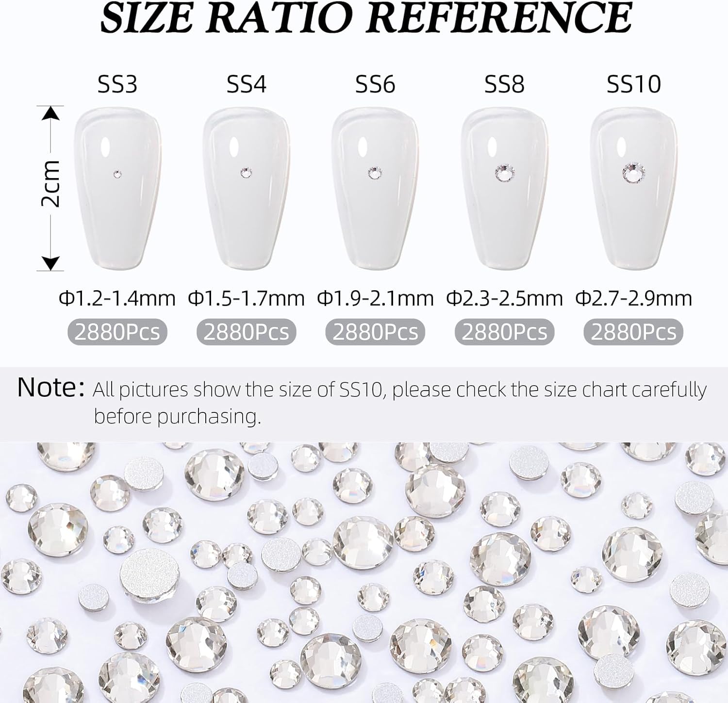 Crystal Clear Flatback Rhinestones, Glass Rhinestones for Nail Art and Craft, Glue Fix, Loose Crystal Gemstones(Crystal, SS3, 2880pcs, 1.3-1.4mm)
