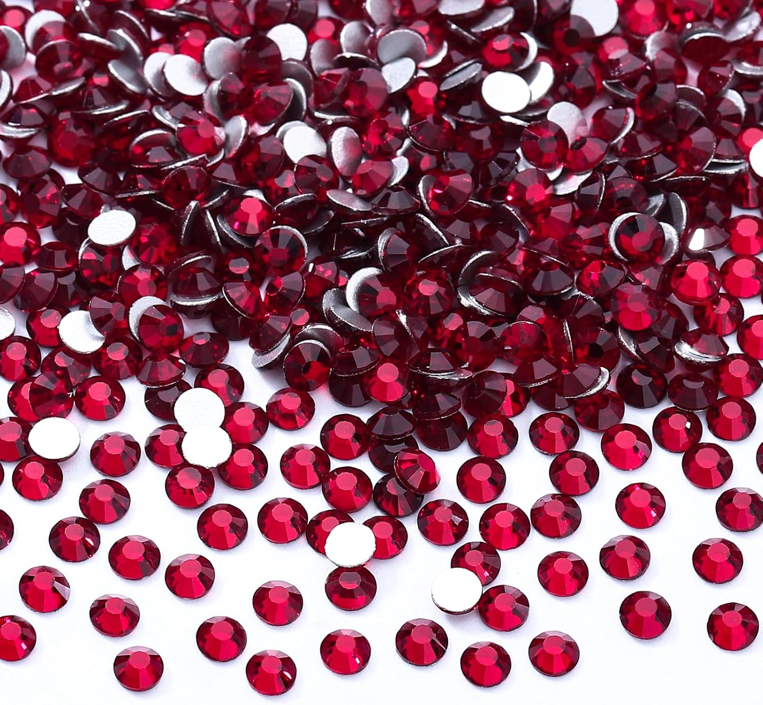 Siam Flatback Rhinestones, Glass Rhinestones for Nail Art and Craft, Glue Fix, Loose Crystal Gemstones(Siam, SS8, 2880pcs, 2.3-2.5mm)