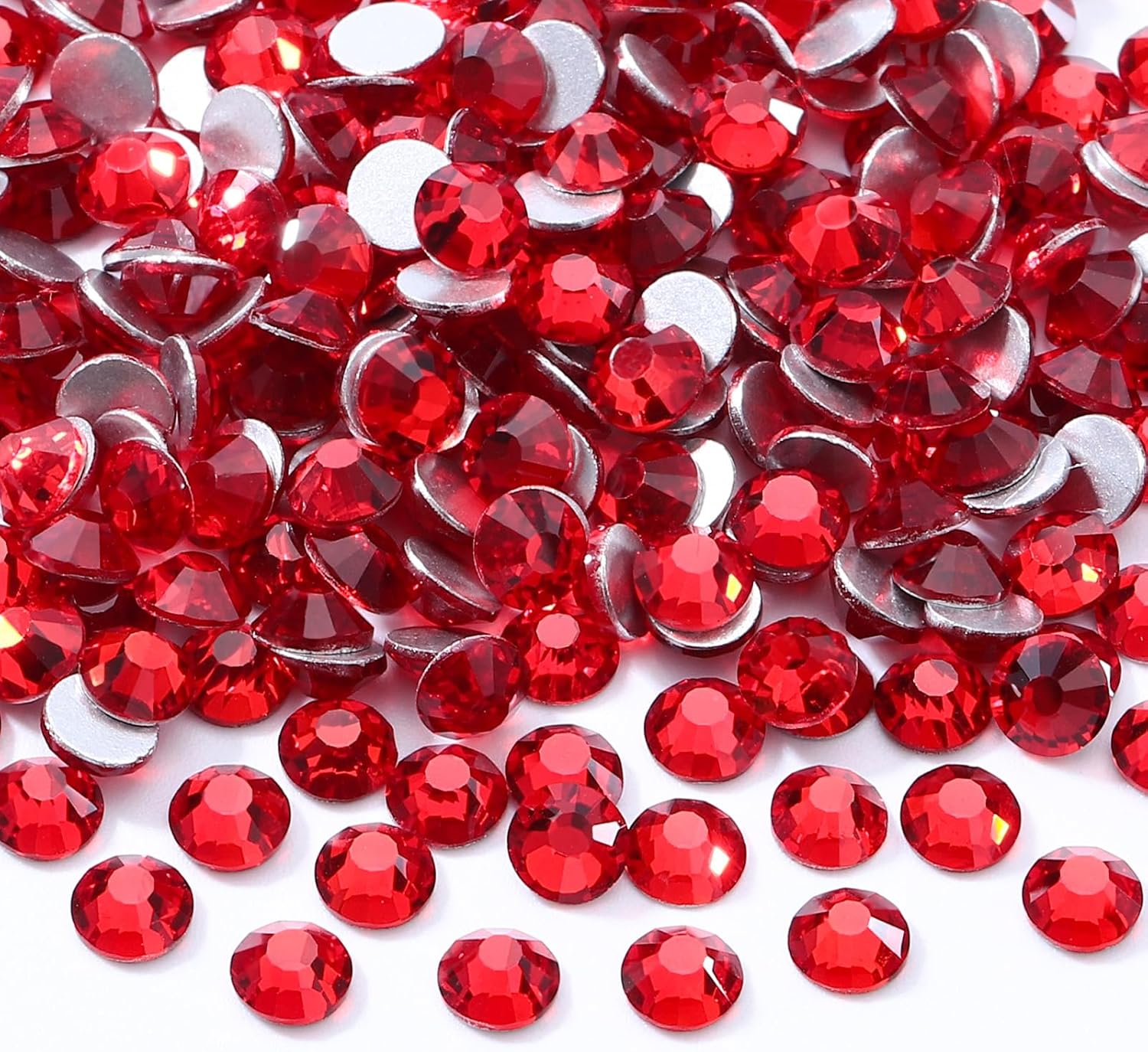 Red Flatback Rhinestones, Glass Rhinestones for Nail Art and Craft, Glue Fix, Loose Crystal Gemstones(Red, SS16, 2880pcs, 3.8-4.0mm)
