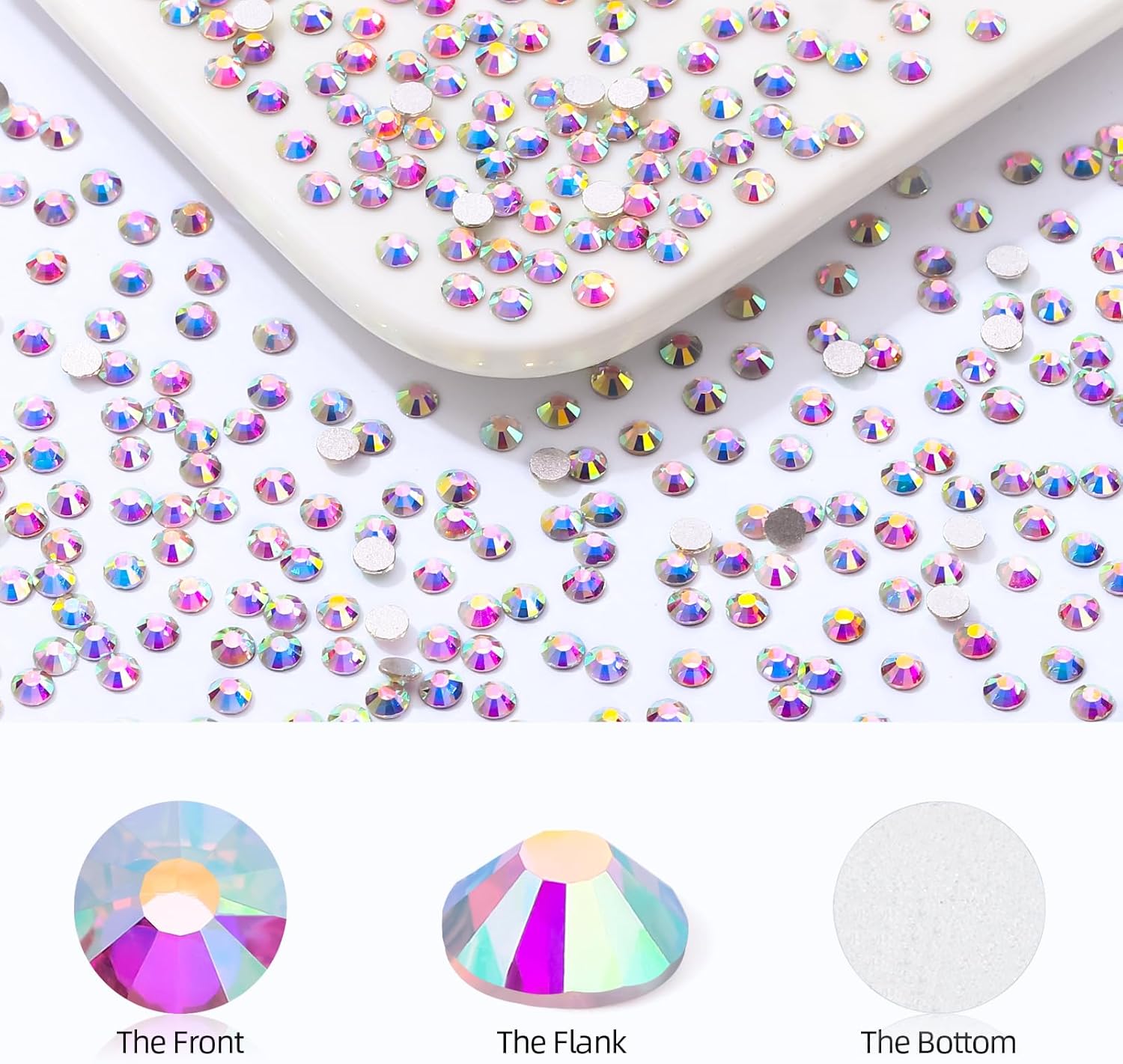 Crystal AB Flatback Rhinestones, Glass Rhinestones for Nail Art and Craft, Glue Fix, Loose Crystal Gemstones(Crystal AB, SS6, 2880pcs, 1.9-2.0mm)