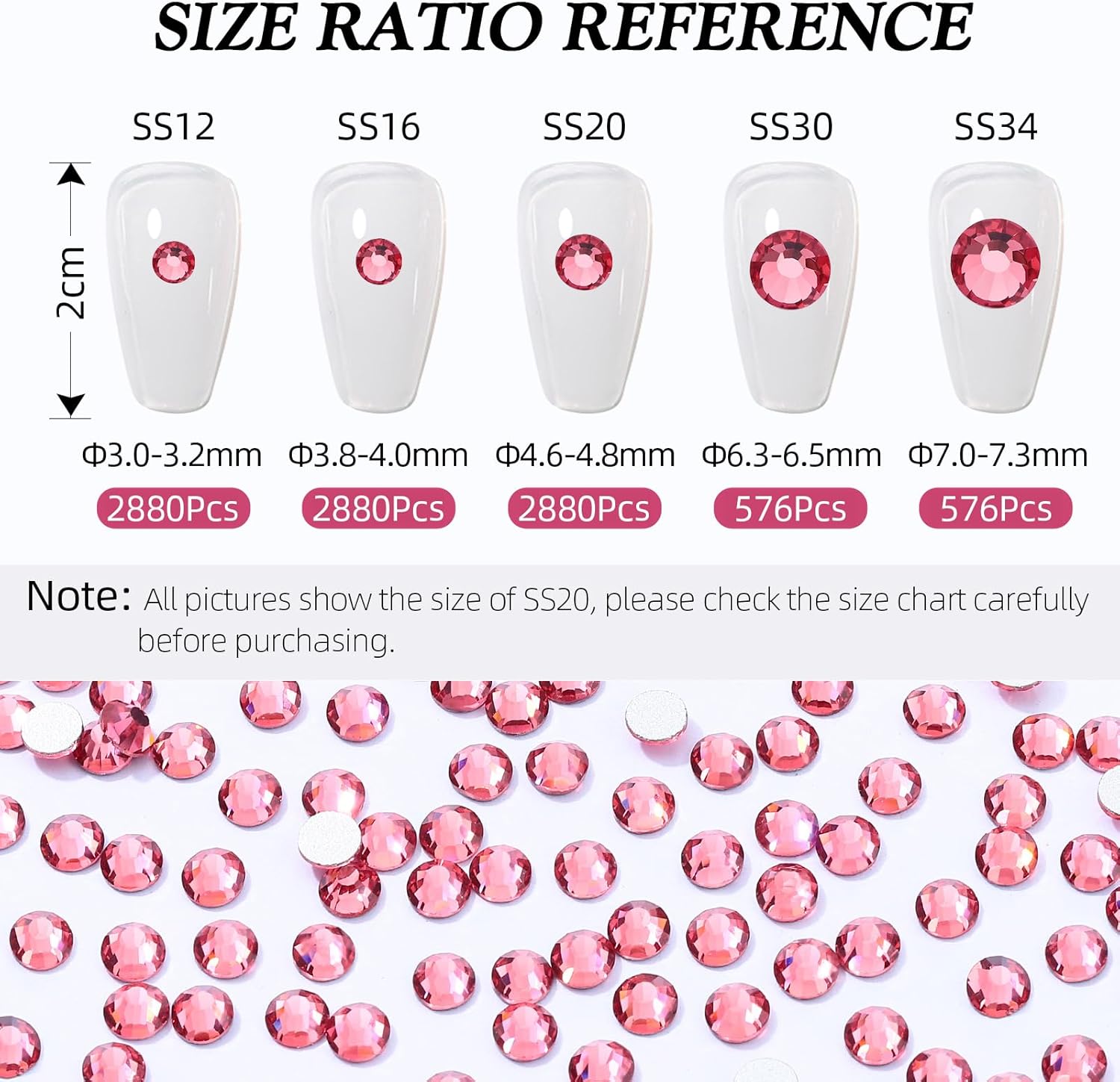 Rose Flatback Rhinestones, Glass Rhinestones for Nail Art and Craft, Glue Fix, Loose Crystal Gemstones(Rose, SS16, 2880pcs, 3.8-4.0mm)