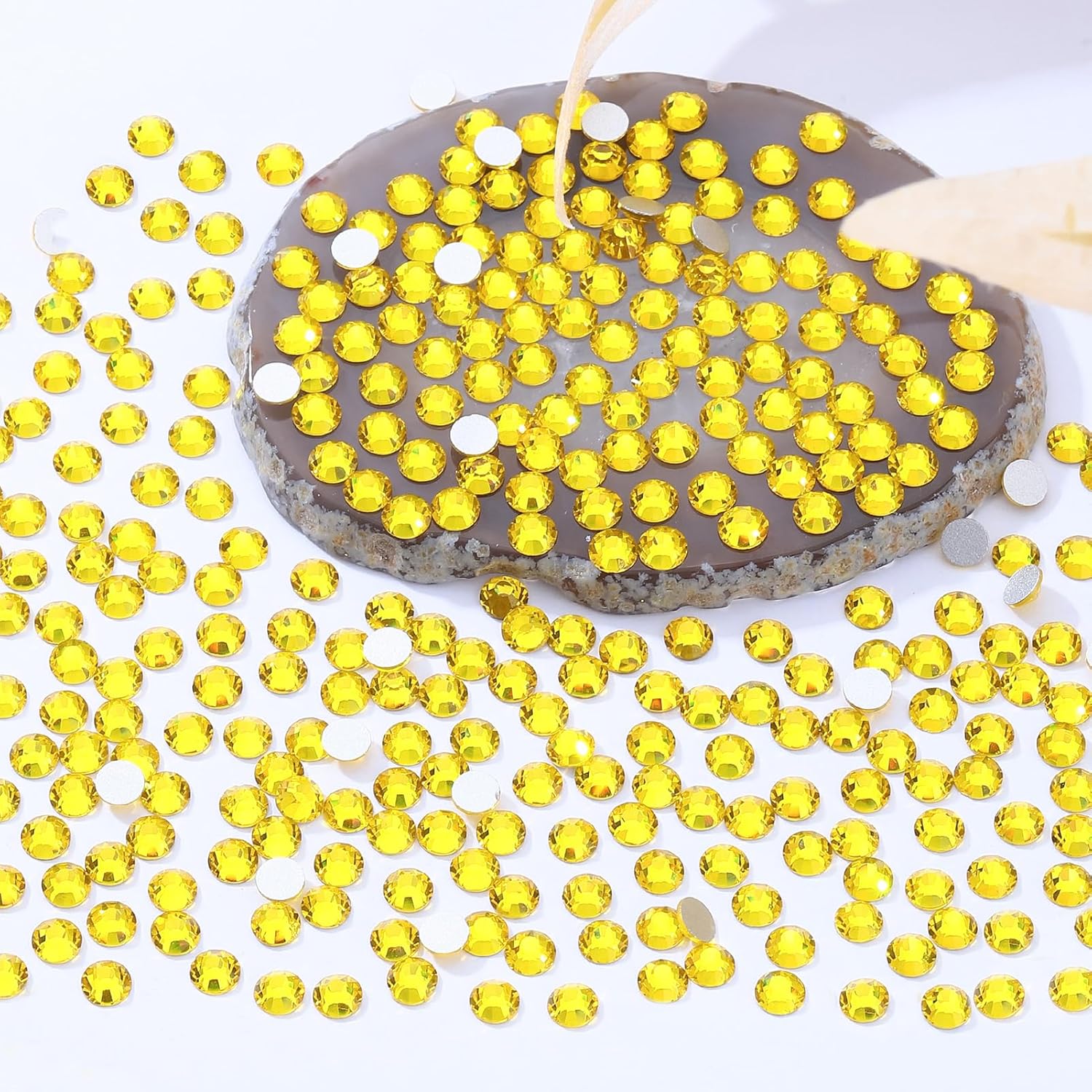 Yellow Flatback Rhinestones, Glass Rhinestones for Nail Art and Craft, Glue Fix, Loose Crystal Gemstones(Yellow, SS20, 2880pcs, 4.6-4.8mm)