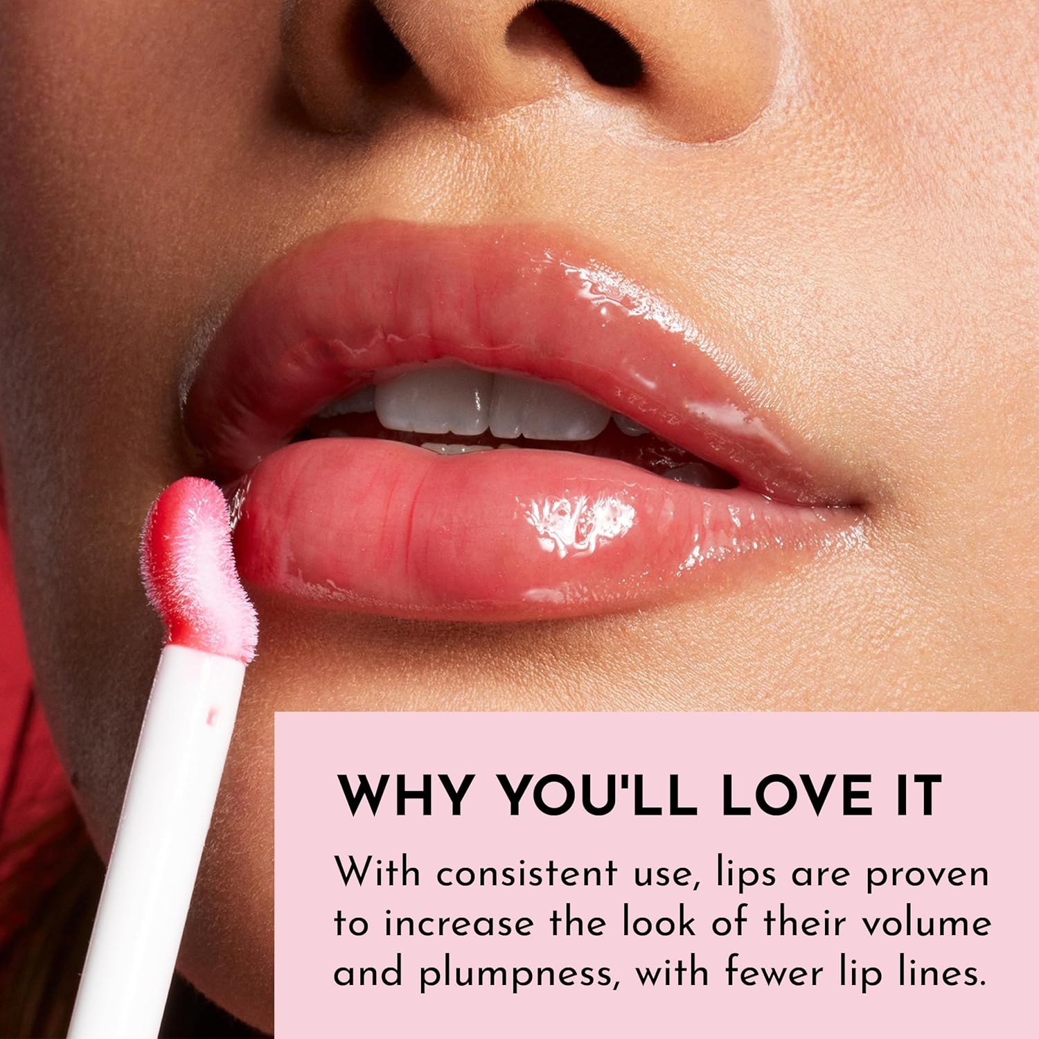 - Key Active Ingredients: Formulated with MAXI-LIP, a natural peptide complex that stimulates collagen synthesis via Hyaluronic Acid. Our gloss deeply moisturizes and firms the lips, making them appear bigger, smoother, and more defined. Enriched with Shea Butter to hydrate and soothe the lips, and Rosehip Oil to make them pillowy soft.