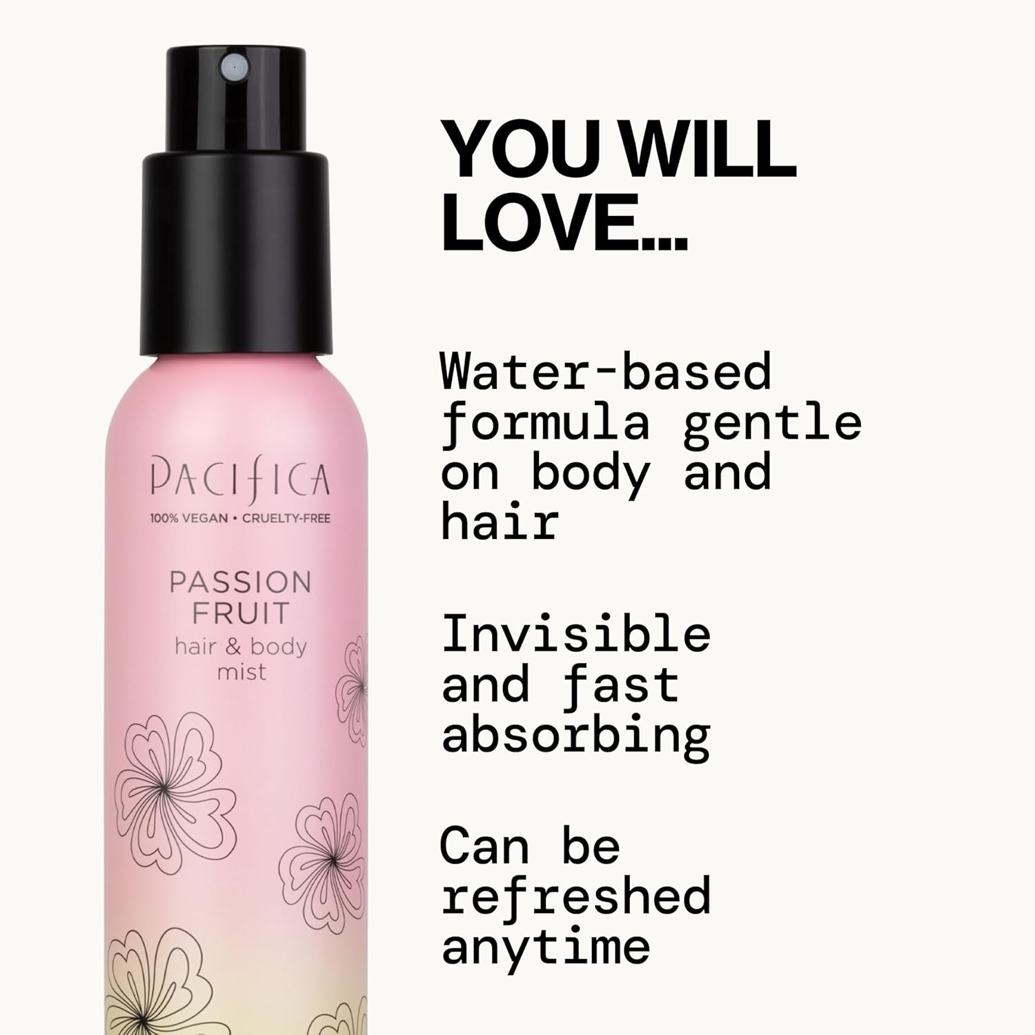 Pacifica Hair Mist Perfume & Full Body Spray for Women - Passion Fruit Body Mist Fragrance w/Pineapple, Orange Blossom, Vanilla, Sandalwood & Bergamot – Alcohol-Free, Vegan & Cruelty-Free, 5 oz
