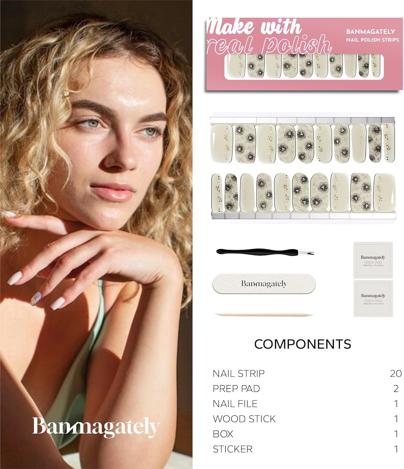 Nail Polish Strips, 20Pcs Salon Quality Gel Nail Stickers, Easy Long Lasting Wraps for Short Nails no UV Light Needed (Grey Flower)