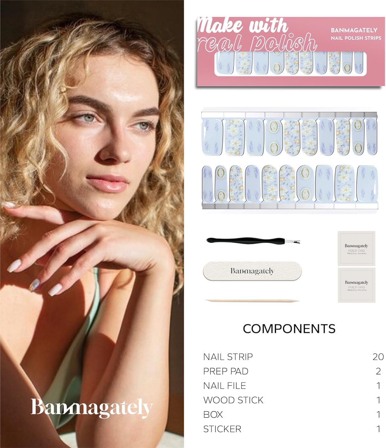 - Quick & Easy Application:Achieve a perfect manicure in minutes! Simply select the right size strip, peel off the protective layer, and apply. Stretch, fold under the nail tips, and trim excess with the included nail file. To remove, just peel from the cuticle end—no hassle, no mess.