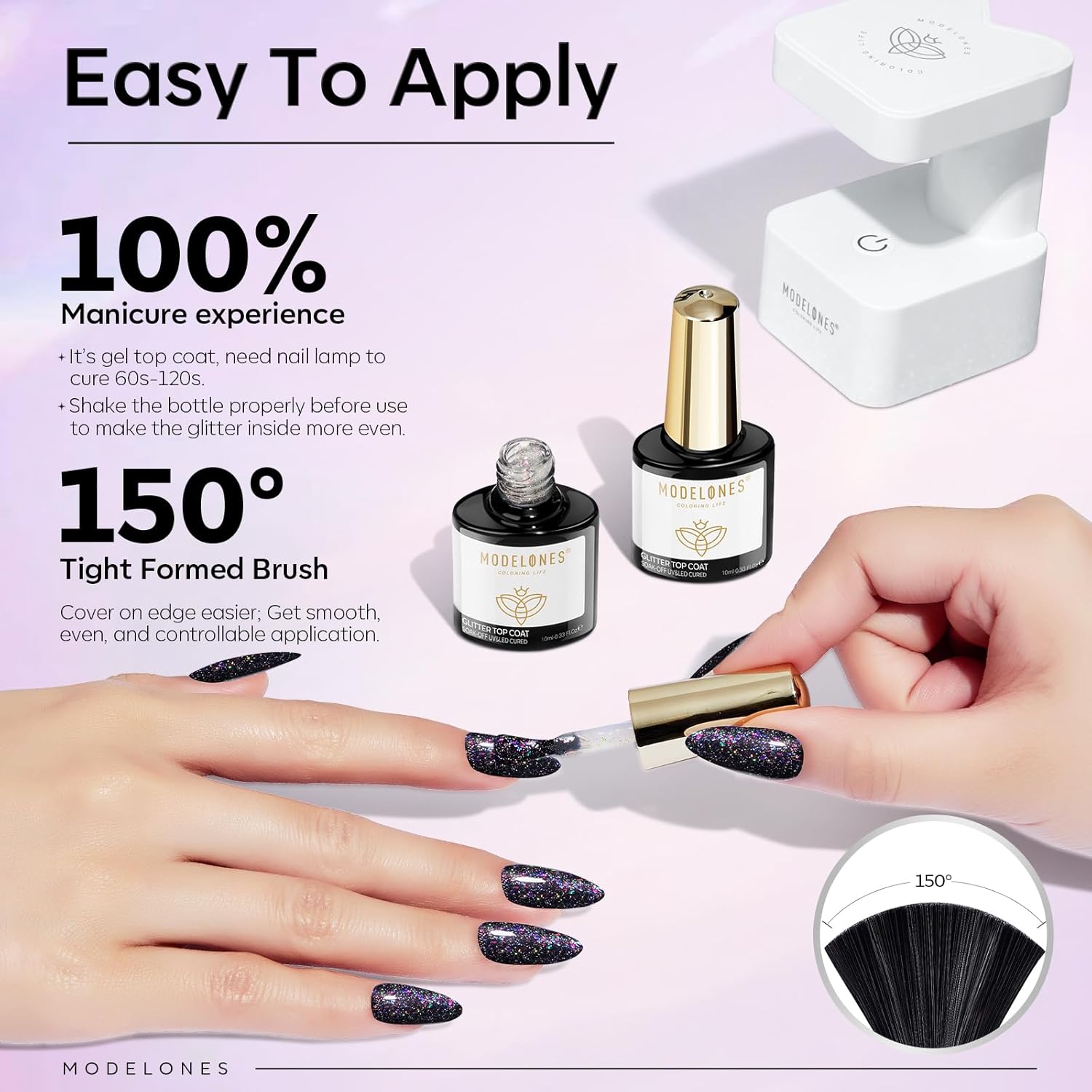 - Playful Glitter Top Coat: Modelones 2024 upgrade translucent top coat gel with sprinkled sequins glitter; Adds a vibrant mix of confetti-like glitter to your nails to achieve a festive and fun look, perfect for celebrations or adding a pop of color