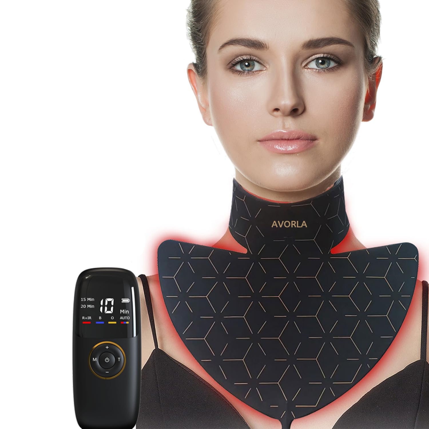 - Multifunctional and Customized Skincare: Avorla LED neck mask has 4 different types of lights that each target a specific skin issue. It allows you to customize your treatment to suit your unique needs. The invisible Infrared light penetrates deeper into the skin which helps to enhance the overall effectiveness of the treatment. The Red LED light reduces wrinkles. The Blue LED light is excellent for combating acne and breakouts.