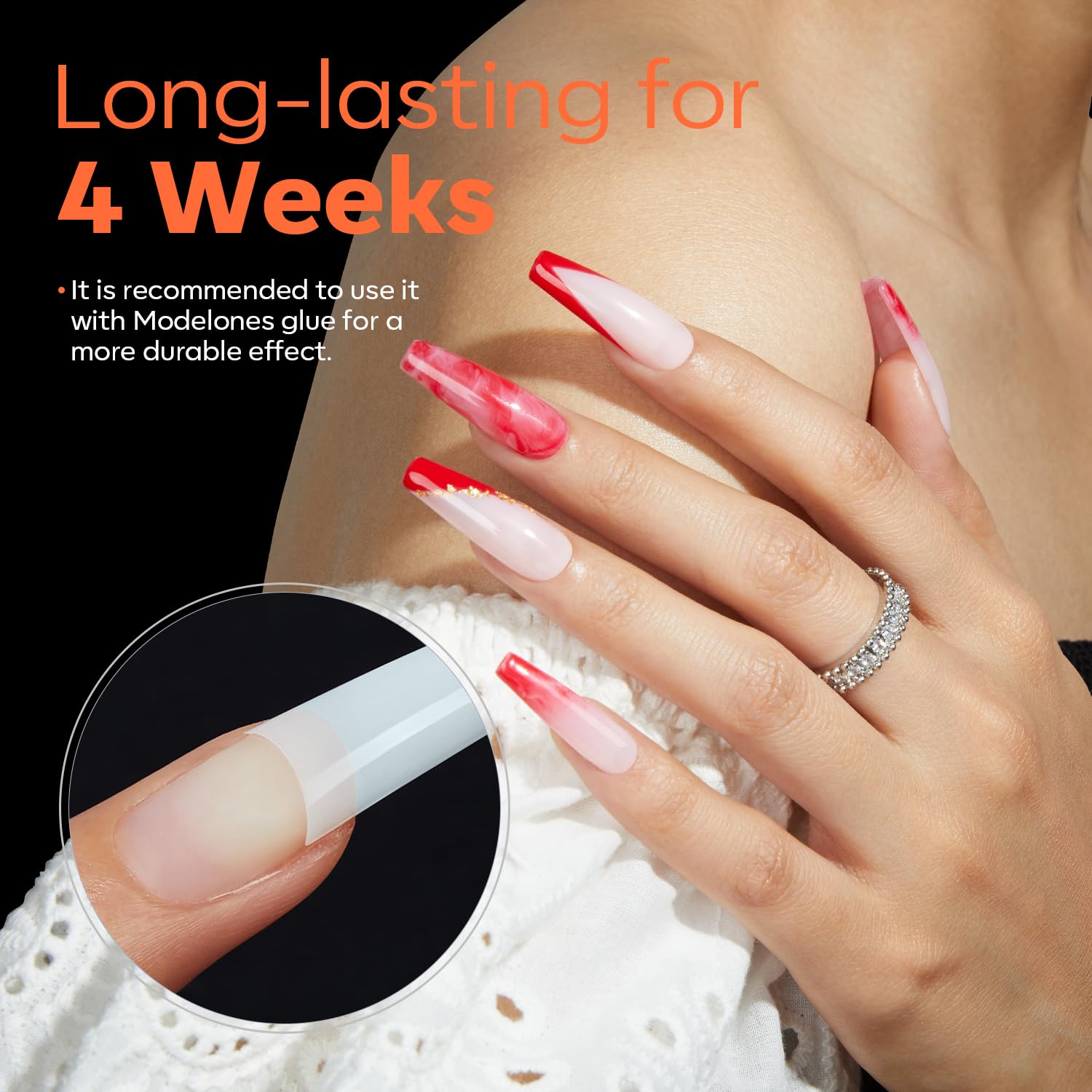 - Upgrade High-Quality Material: Modelones nail tips are made with high-quality material, they are breathable, lightweight, and durable, making your nails look natural and nice. Have no toxins, no smell, and no harm to your nails and health. Pre-shaped and easy to apply