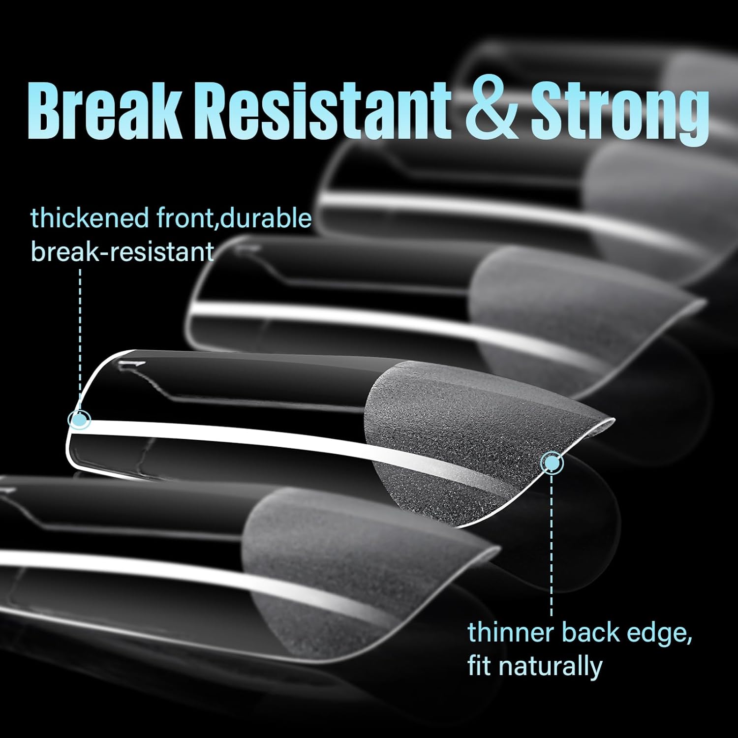 • 【Fit Natural Nails】The design feature of thick front edge and thin rear edge makes the nail tips fit our nail bed better. Smooth curves ,radians and good color condition, without separation or exposure, and your nails will look more natural. No tightness on nails.