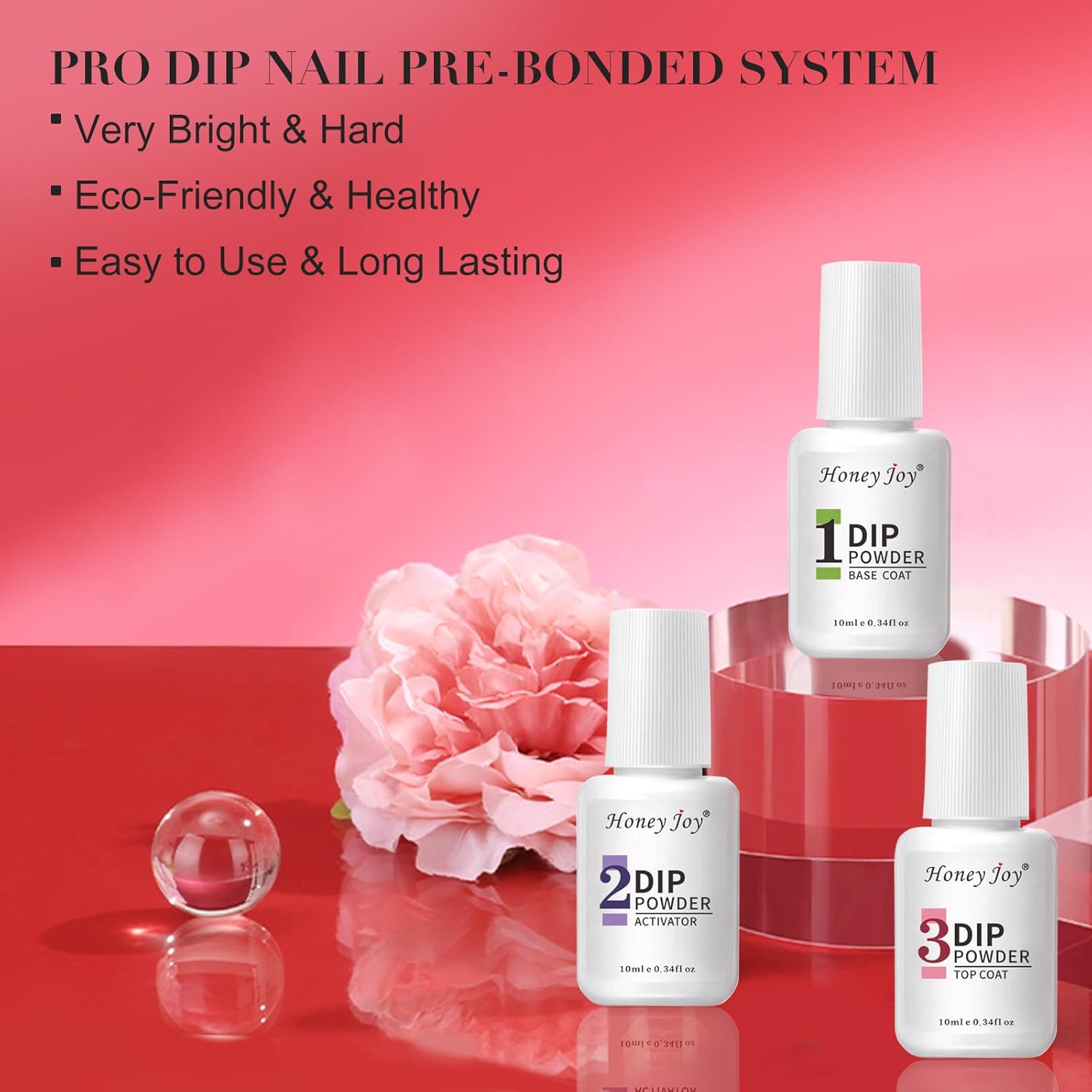 - 🎁Dip Powder Nail Kit Includes: Embrace the Classic Elegance of Ruby Whisper with our Honey Joy Deep, Velvety Red Dip Powder Liquid Set, a perfect dip powder nail kit starter. This kit contains 4 x radiant dipping powder shades (10g each) for that soft blush to playful bubblegum pop, along with a dip nails liquid set including base & top coat, and activator (10ml each). Additionally, you'll find 4 professional tools (including a nail brush, cleaner stick, and nail file) to achieve that coveted high-quality, salon-effect at home with our comprehensive dipped nails powder starter kit.